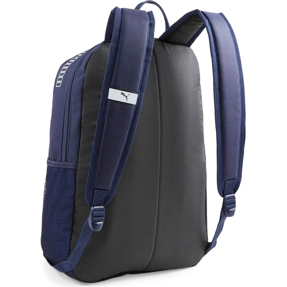 Рюкзак спортивный PUMA Phase Backpack II выполнен из прочной синтетической ткани и сочетает в себе классический стиль и функциональность. Рюкзак имеет несколько отделений: - большое центральное отделение на молнии с карманом для ноутбука или планшета, - небольшое отделение на молнии на переднем плане, - сетчатый карман для бутылки с водой. Поролоновые вставки на задней панели рюкзака обеспечивают максимальный комфорт и удобство. Мягкие эргономичные плечевые ремни удобно регулируются по длине. Большой логотип PUMA Cat Logo в центре. 100% полиэстер. Размеры: 36 см x 25 см x 17 см. Объем: 21л.