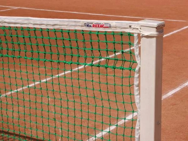 Сетка теннисн. "KV.REZAC" проф., арт.21005215, зелен., нить 3 мм ПП, ячейки 45х45 мм, двойная сетка сверху, стальной трос в ПВХ оболочке 14 м, размер 12,72х1,07 м