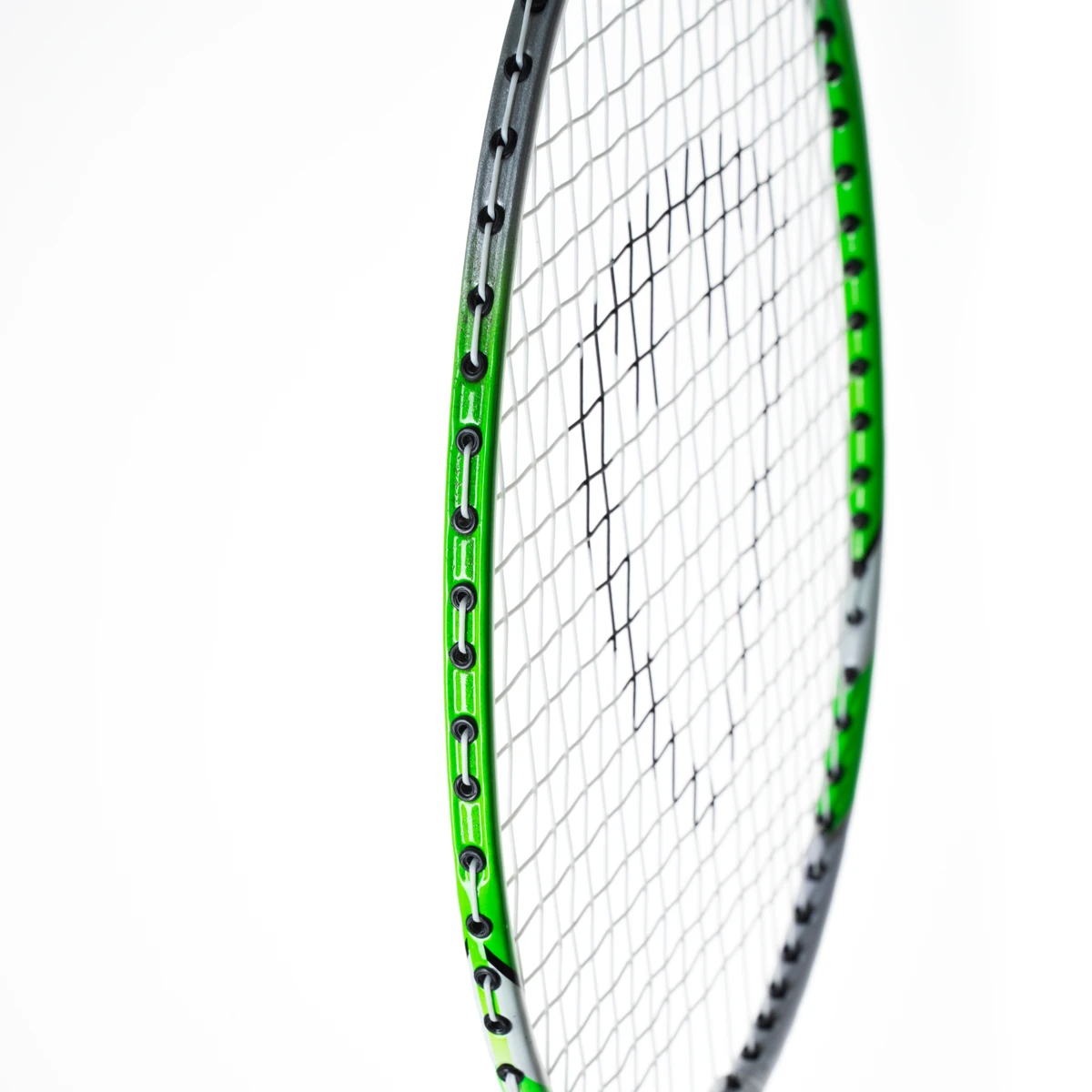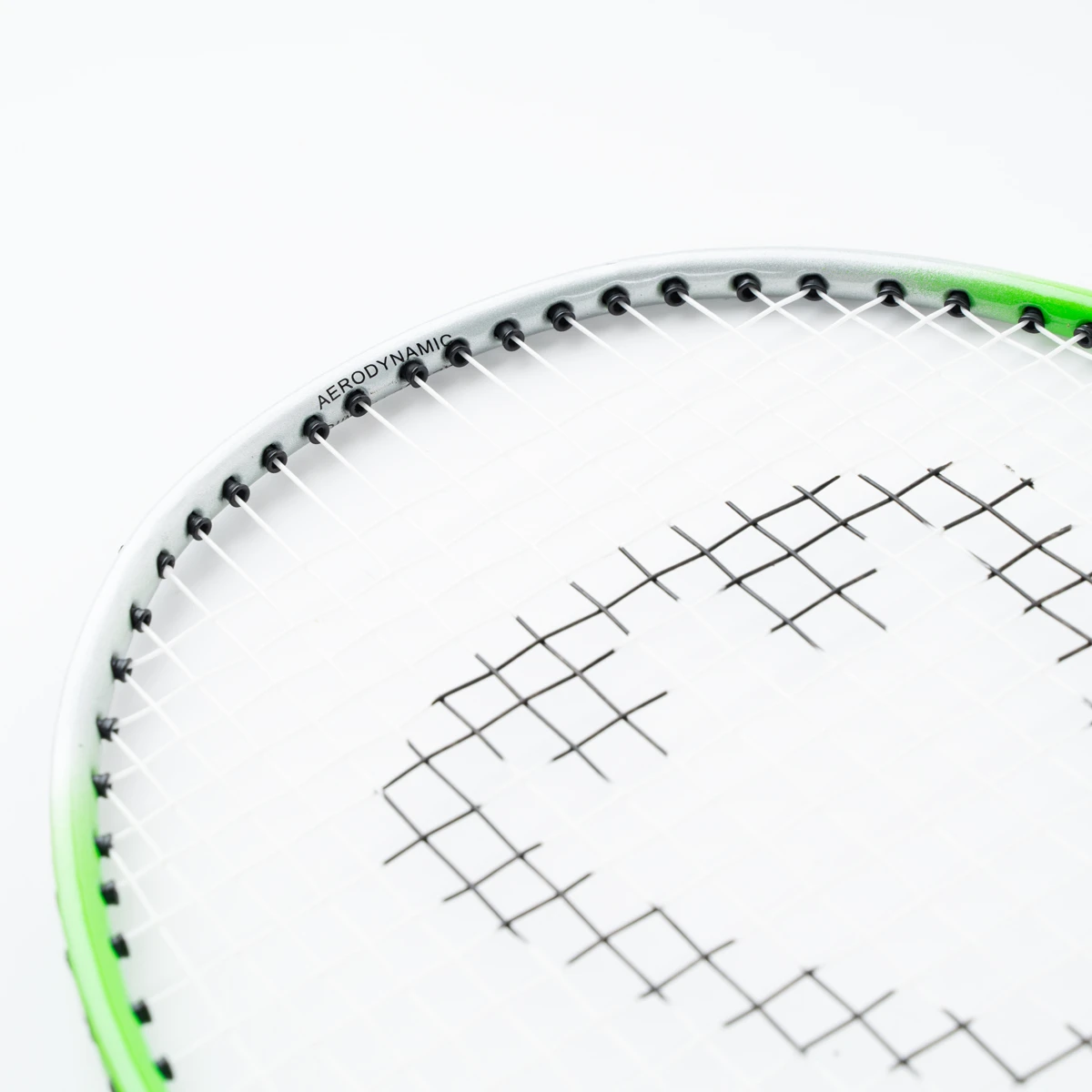 Изометрическая форма головы выравнивает длину продольных и поперечных струн на струнной поверхности, увеличивая ударную площадь для повышения точности ударов.
