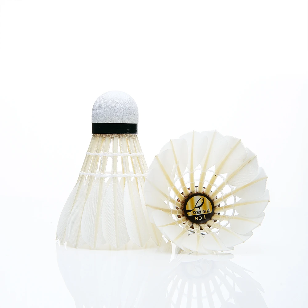 Воланы для бадминтона DOUBLE FISH JINQUE 01 (перо/пробка), проф., уп.12 шт.,сред.скор.,белый,