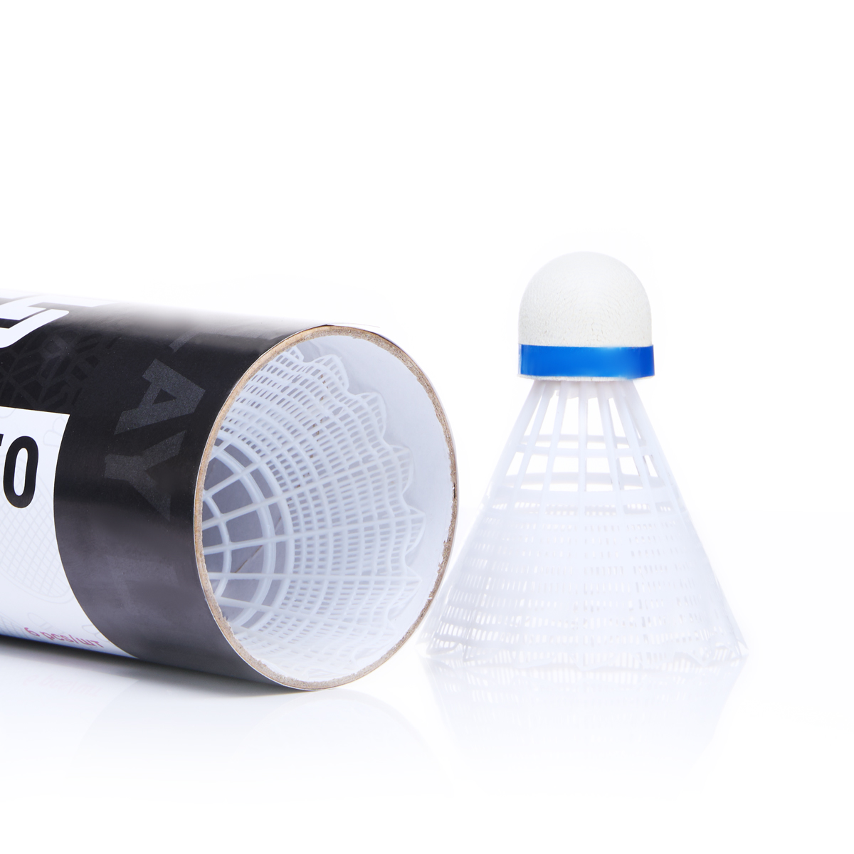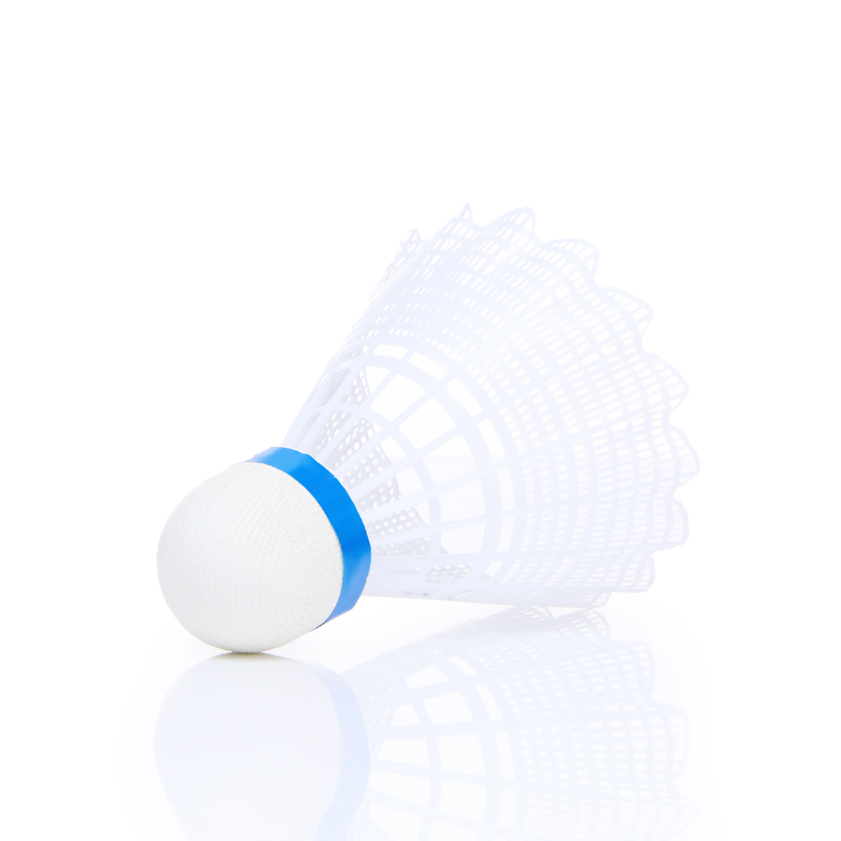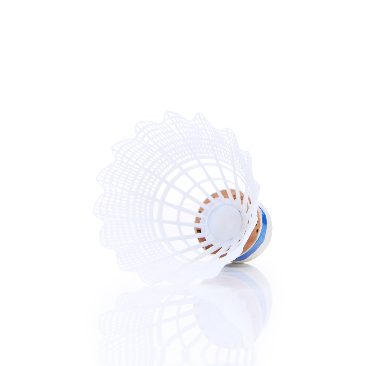 Волан TORRES 250, тренировочного уровня для игры в зале и на улице. Нейлоновая юбка белого цвета. Пробковая "головка" волана с индикаторной лентой синего цвета, что соответствует средней скорости, для игры при температуре от 12 до 23 °С. Высота волана 8 см, диаметр юбки 7 см.