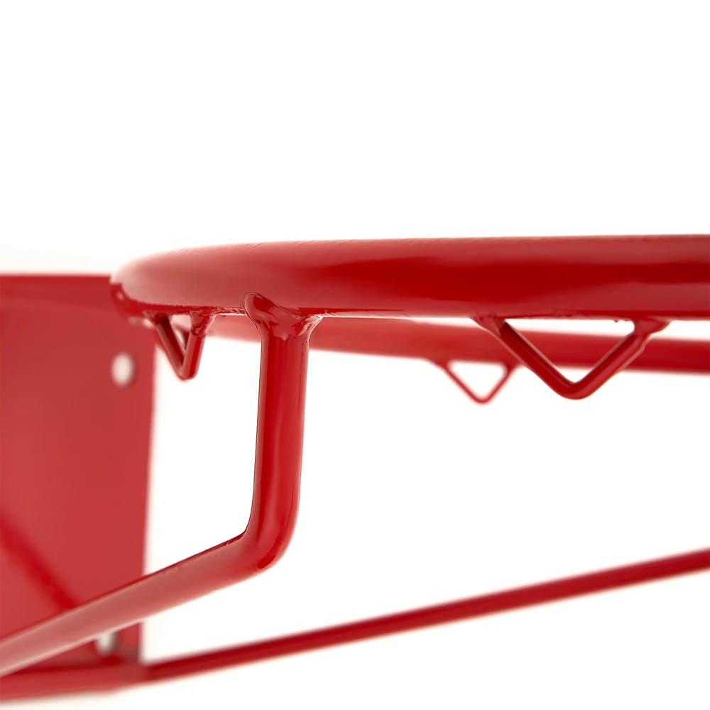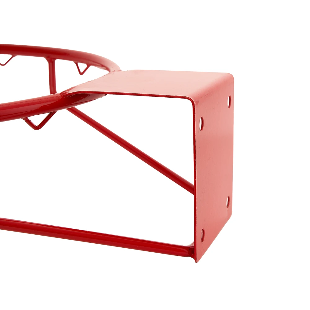 Кольцо баскетбольное №7, диаметр 450 мм, металлический прут d16 мм, кронштейн из стального листа 3 мм с 4-мя крепежными отверстиями под саморезы или анкера, 12 крючков для крепления сетки. Без сетки. Цвет красный. Расстояние между отверстиями для крепления: по горизонтали 10 см по вертикали 11 см