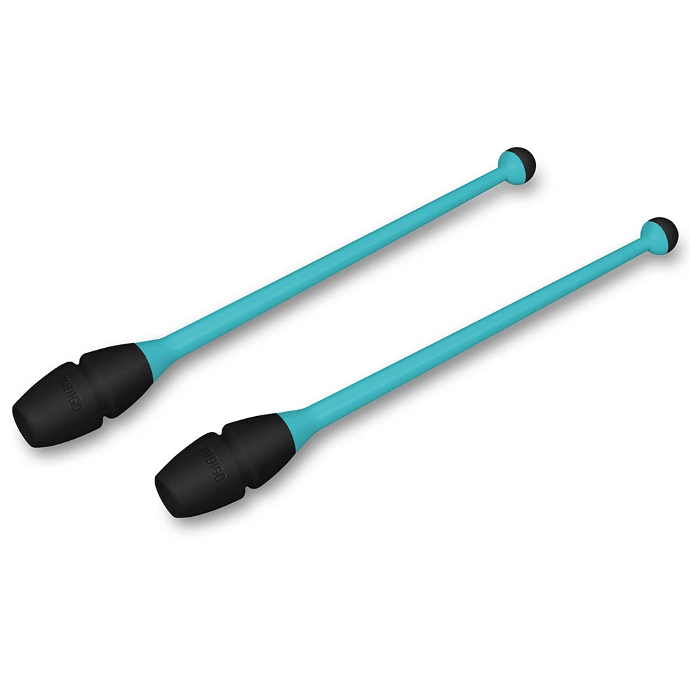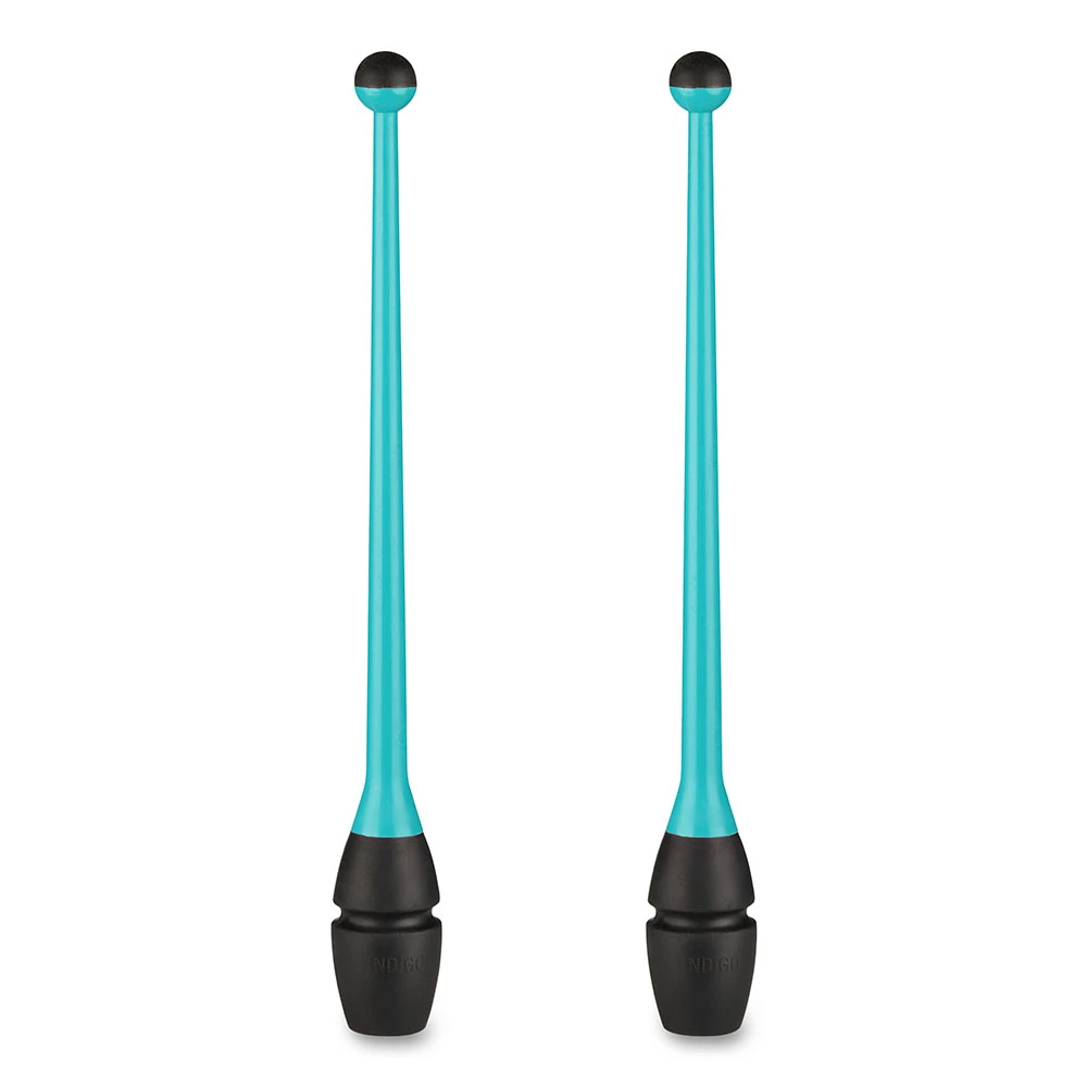 Булавы для худ. гимнастики INDIGO, IN018-BBK, 41 см, пластик, каучук, в компл. 2шт, бирюз-черн