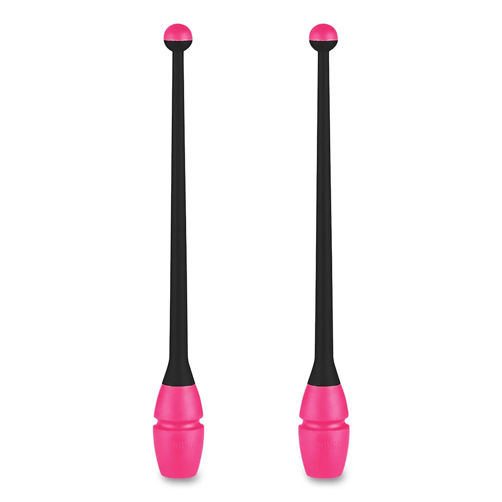 Булавы для худ. гимнастики INDIGO, IN018-BKP, 41 см, пластик, каучук, в компл. 2шт, черно-розов.