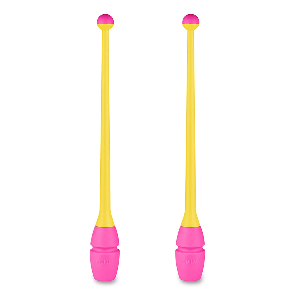 Булавы для худ. гимнастики INDIGO, IN019-YP, 45 см, пластик, каучук, в компл. 2шт, желто-розовый