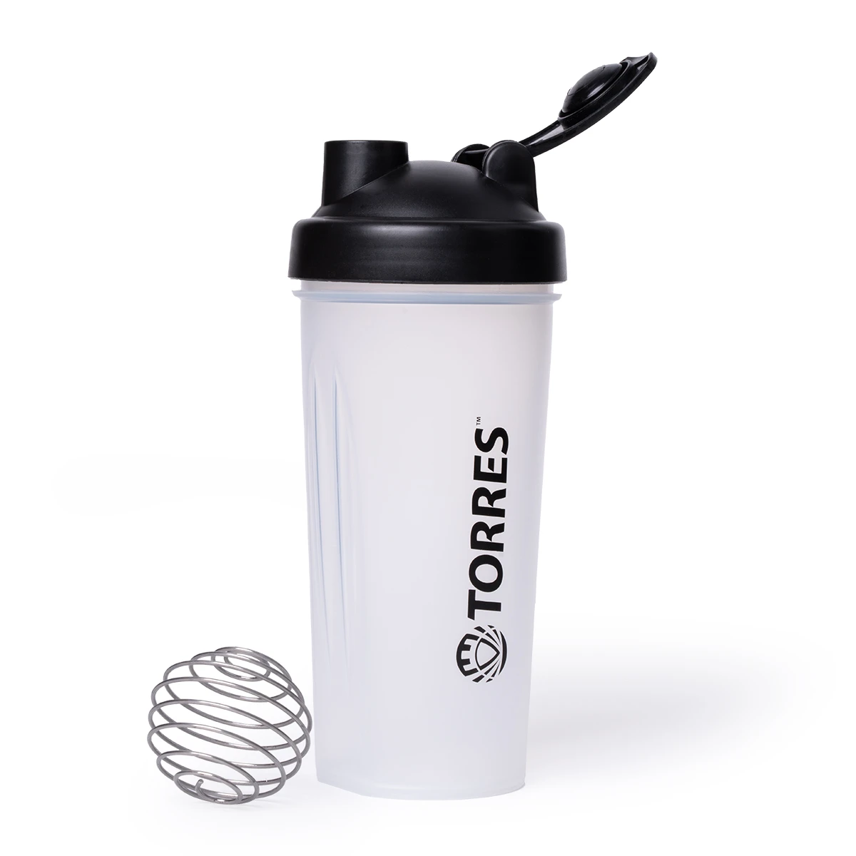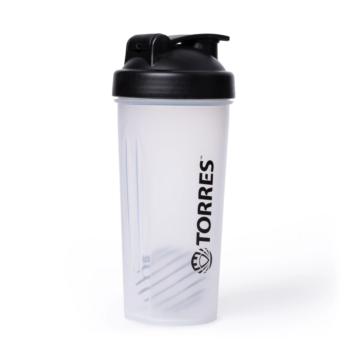 Шейкер спортивный TORRES. Объем 600 мл, гипоаллергенный жесткий пластик, безопасная герметичная крышка с защитным колпачком, для предотвращения загрязнения и протекания. Внутри металлический шарик для взбалтывания коктейля. Наличие шкалы позволяет с точностью отмерять порцию коктейля. Не предназначен для горячих жидкостей (выше 80°С) Упаковка - пластиковый пакет.