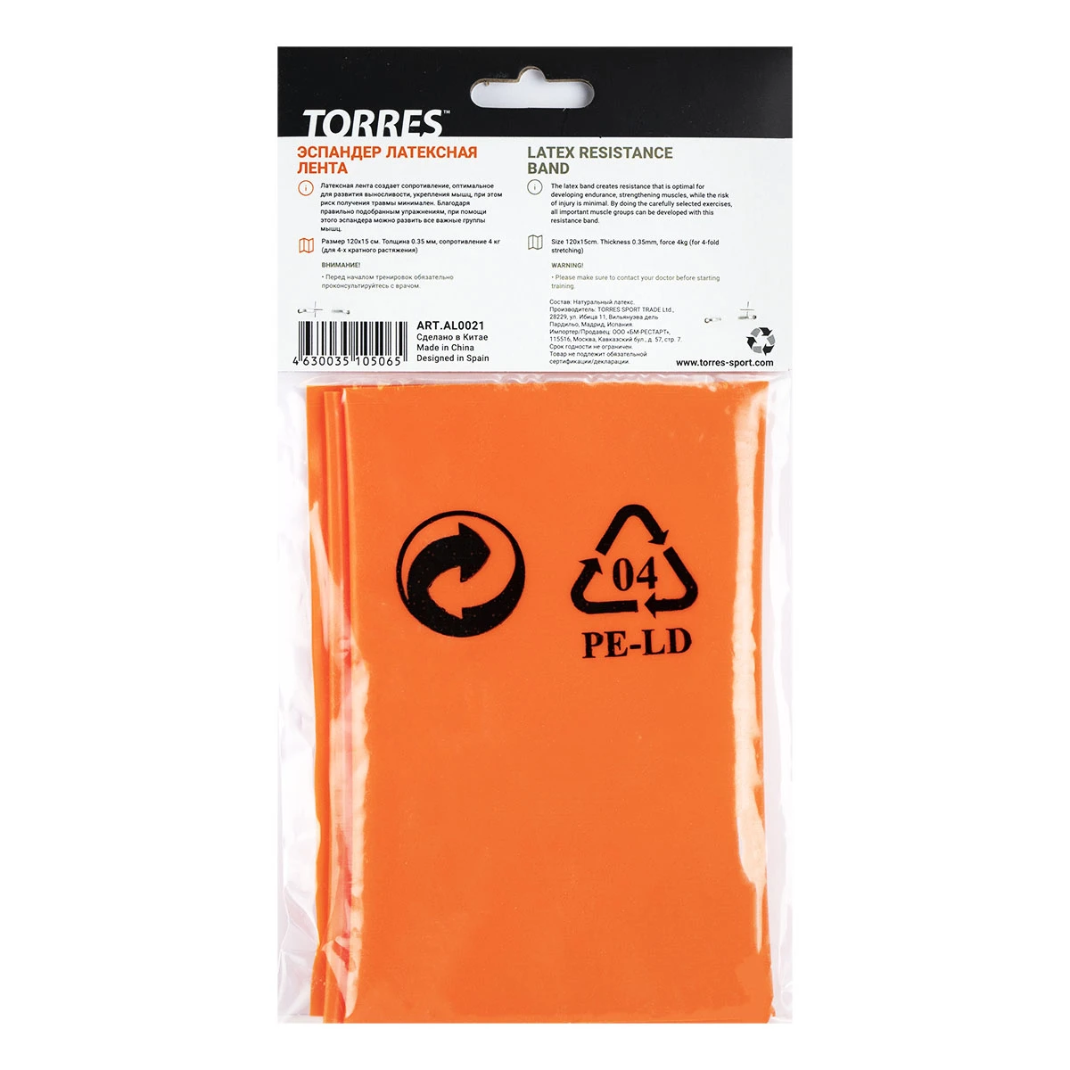 Эспандер TORRES латексная лента , AL0021,длина 120 см, шир.15 см, сопротивление 4 кг.,оранж