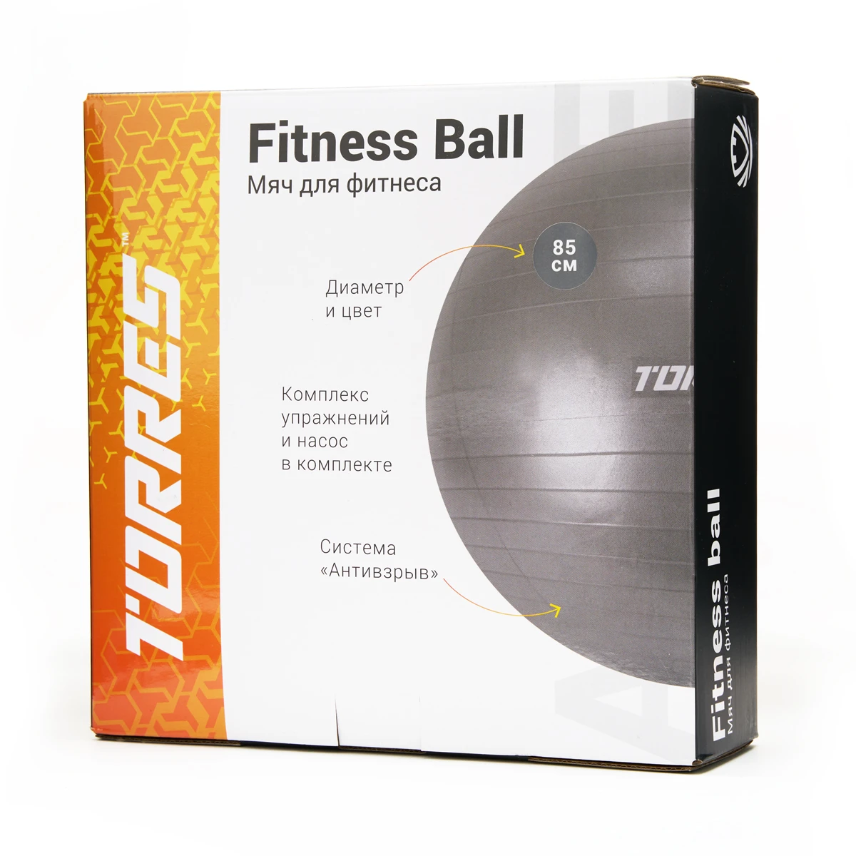 Мяч гимн. TORRES, FB122585, диам. 85 см, эласт. ПВХ, с защ.от взрыва,с насосом, серый