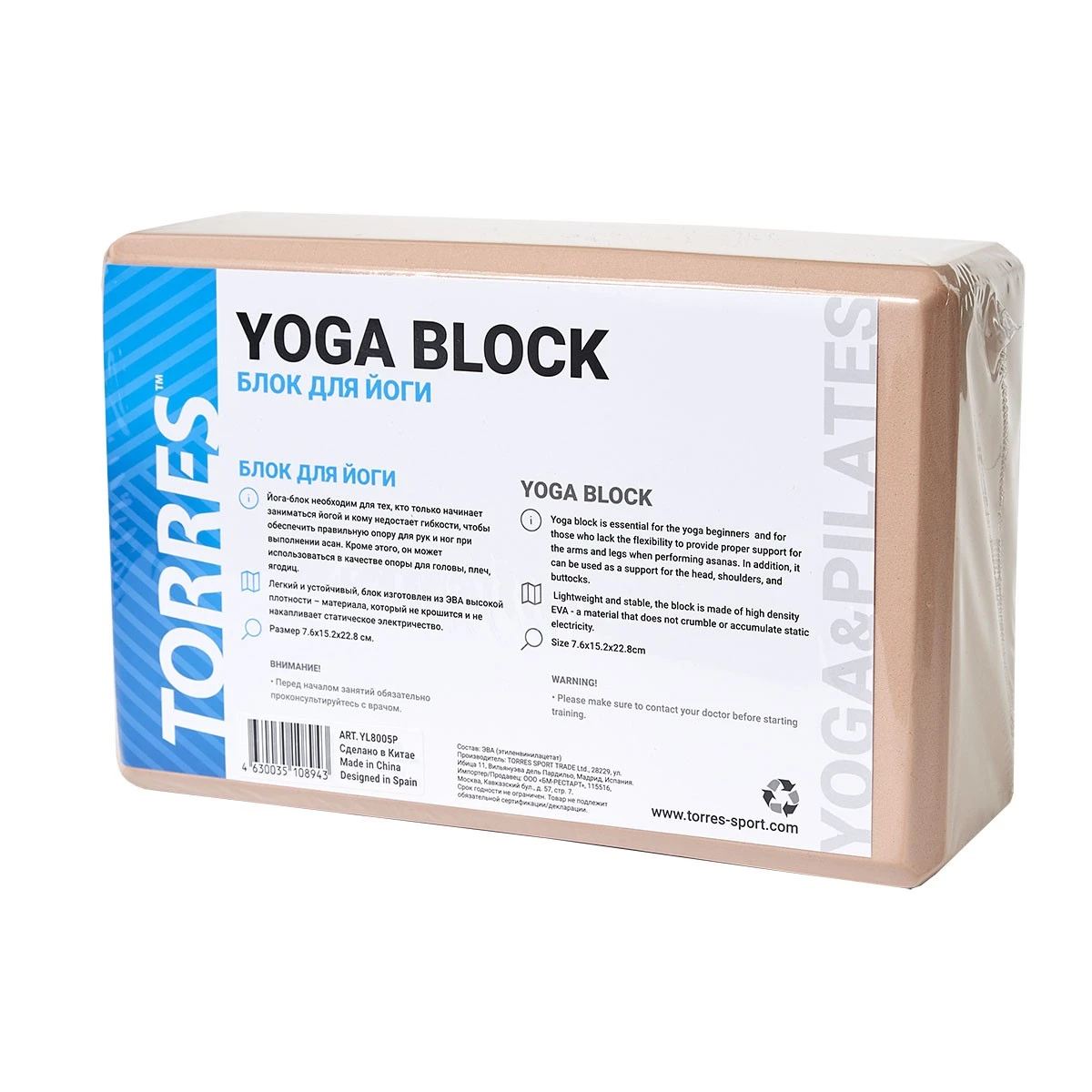 Блок для йоги TORRES, YL8005P, размер 8x15x23 см, материал ЭВА, пудровый