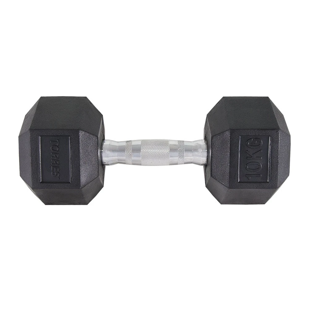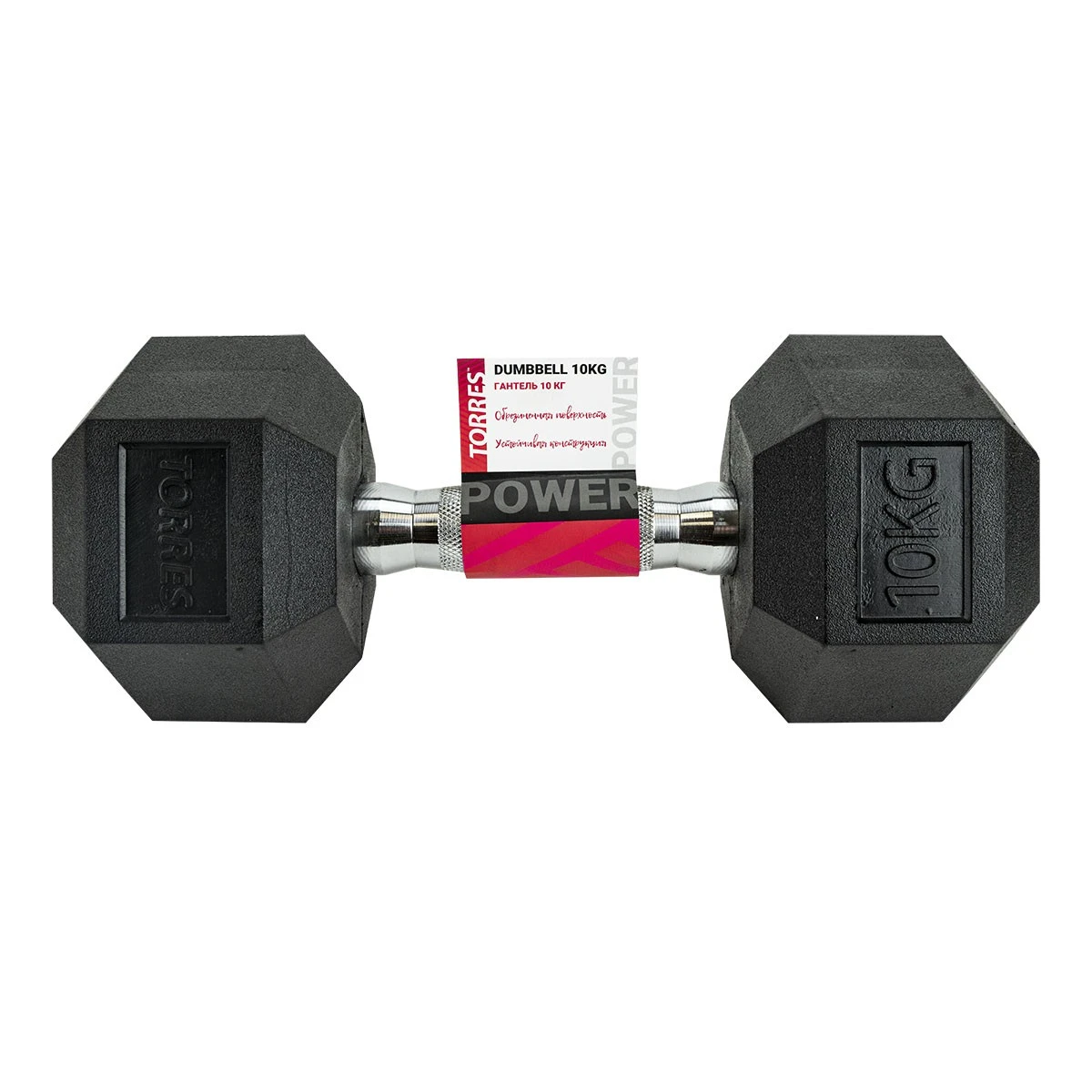 Гантель TORRES 10 кг, PL51910, металл в резиновой оболочке, форма шестигранник, черный