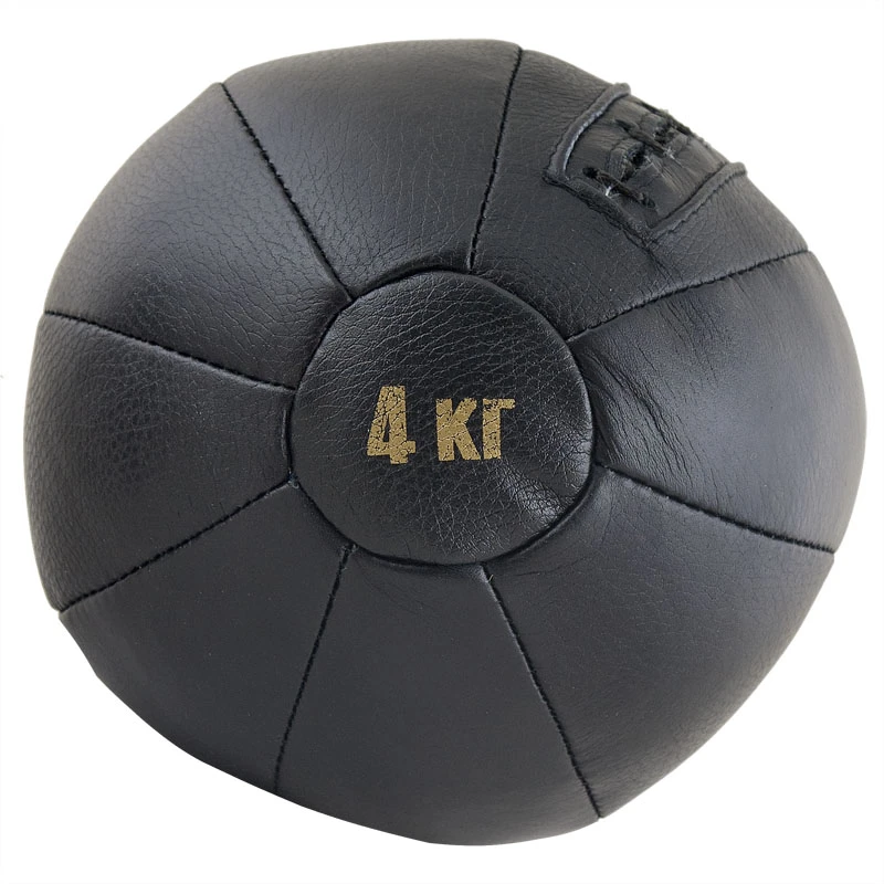 Медбол FS№4000, 4 кг, нат. кожа, наполнитель резиновая крошка, диам. 22 см, машинная сшивка, черный