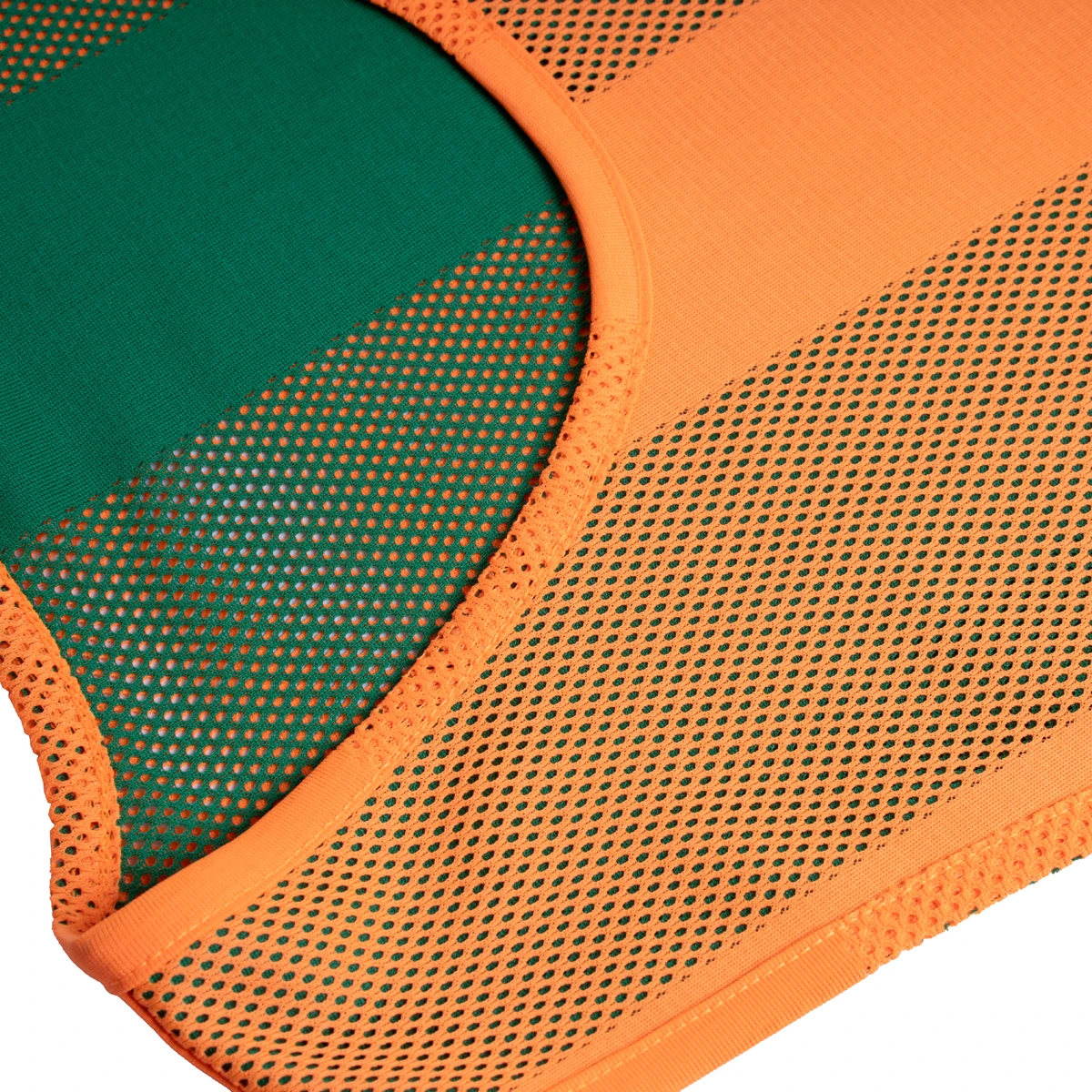 Двухсторонняя манишка ярко-оранжевого цвета с одной стороны и зеленого с другой. Двухслойная конструкция служит для удобства использования в тренировках и играх, в любой момент можно сменить окраску, просто вывернув манишку наизнанку. Такой экономичный вариант 2 в 1 пользуется спросом у широкого круга игроков и тренеров.