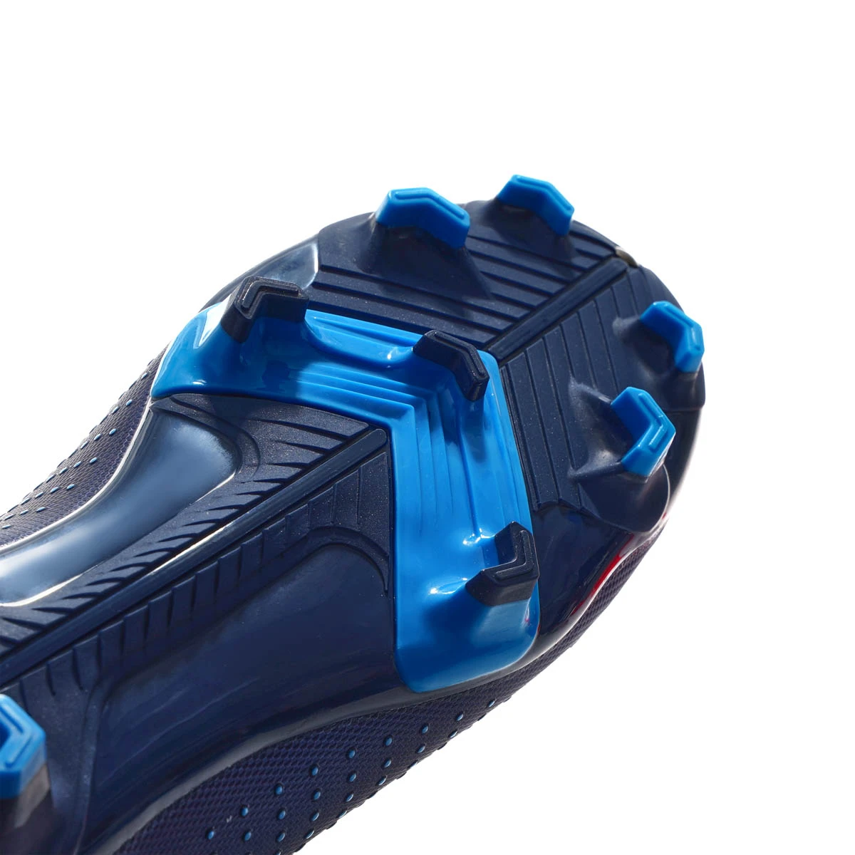 Высококачественная подошва выполнена из термополиуретана, имеет 11 пластиковых несъемных шипов треугольной формы, которые позволяют не зарываться в грунт, при этом обеспечивают многонаправленное сцепление с поверхностью и высокую устойчивость. Вся конструкция бутс равномерно распределяет давление на стопу, позволяя полностью контролировать движение во время игры.