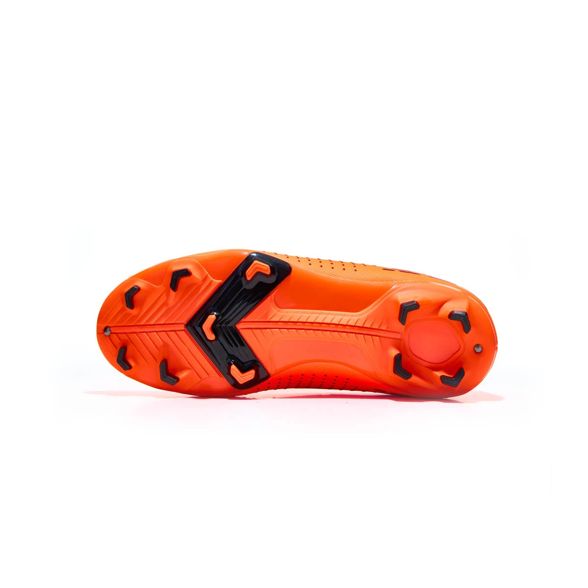 Высококачественная подошва выполнена из термополиуретана, имеет 11 пластиковых несъемных шипов треугольной формы, которые позволяют не зарываться в грунт, при этом обеспечивают многонаправленное сцепление с поверхностью и высокую устойчивость. Вся конструкция бутс равномерно распределяет давление на стопу, позволяя полностью контролировать движение во время игры.