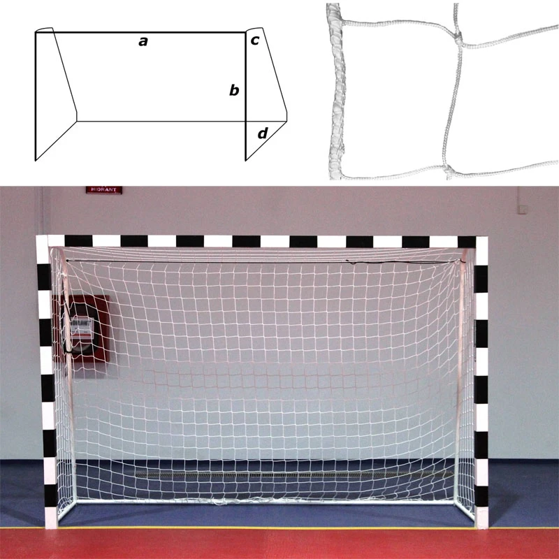Сетка гандб./футзал, по форме ворот, размер a:3.0 b:2.0 c:0.8 d:1.0 м, нить 3,5 мм полипропилен (ПП), ячейка 10*10 см., цвет белый. Кромки сетки обработаны оверлоком. Шнур для крепления в комплекте.
