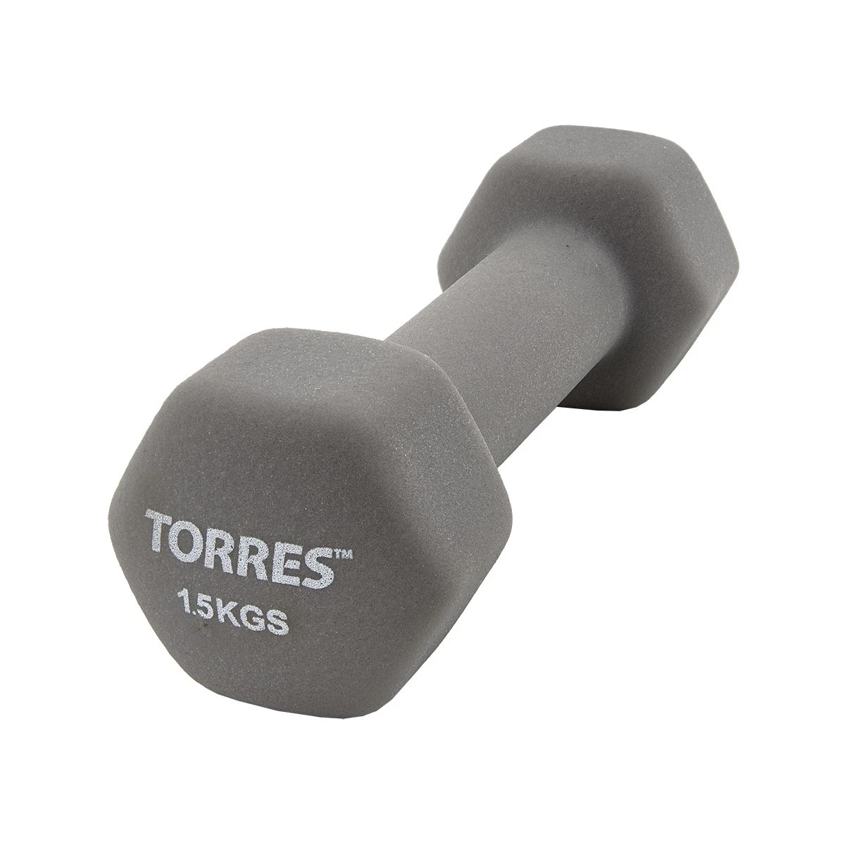 Гантель TORRES 1,5 кг, PL550115, металл в неопреновой оболочке, форма шестигранник, серый