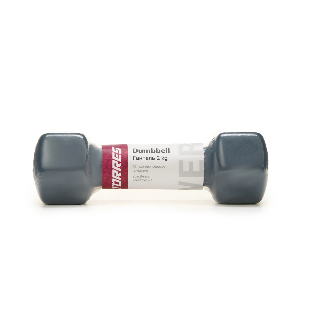 Гантель TORRES 2 кг, PL522502, металл в неопреновой оболочке, форма шестигранник, серый