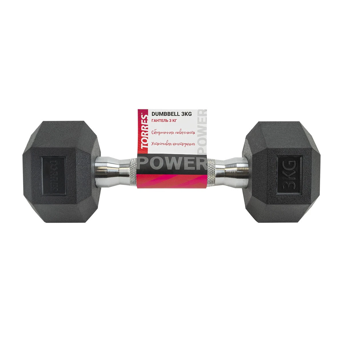Гантель TORRES 3 кг, PL51903, металл в резиновой оболочке, форма шестигранник, черный
