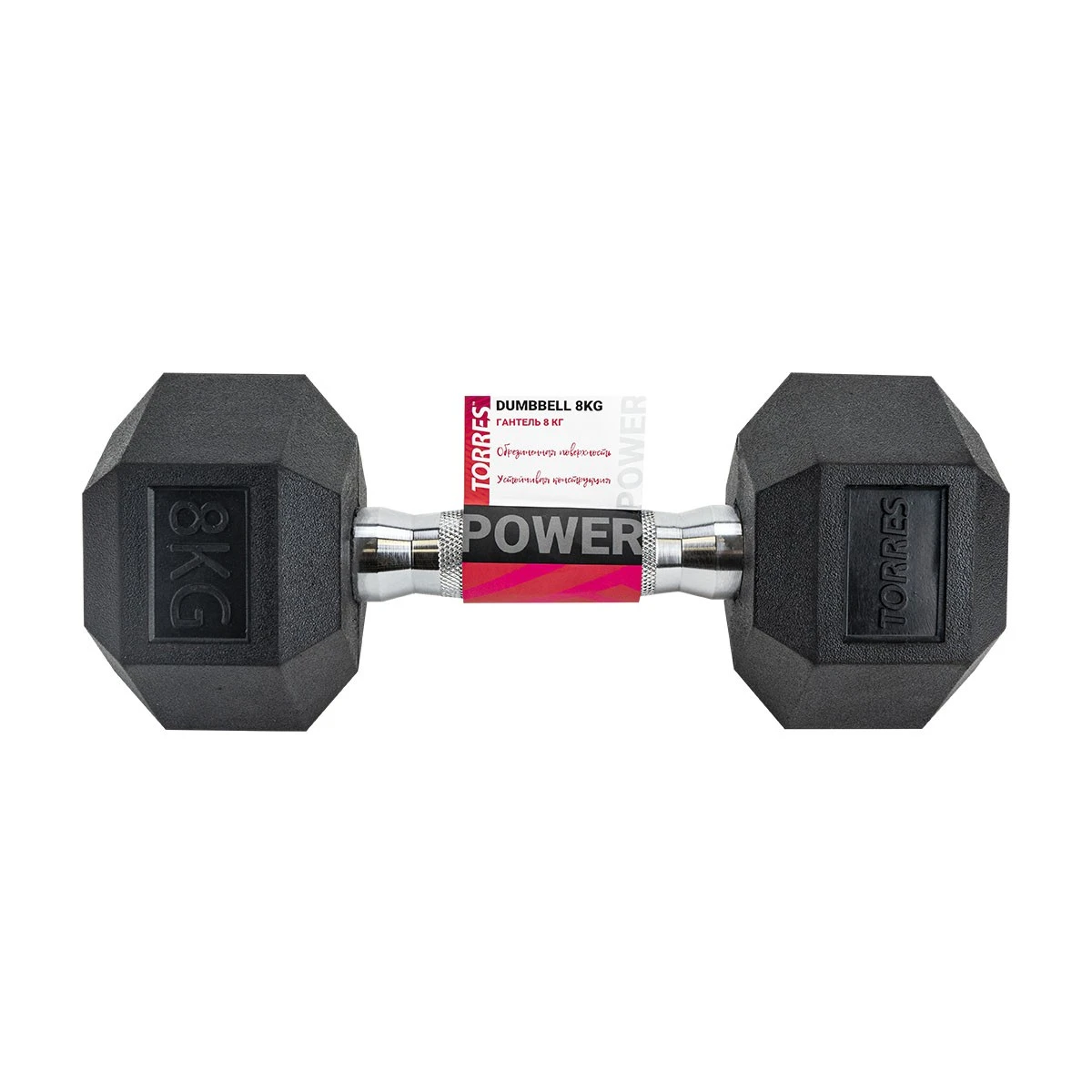 Гантель TORRES 8 кг, PL51908, металл в резиновой оболочке, форма шестигранник, черный