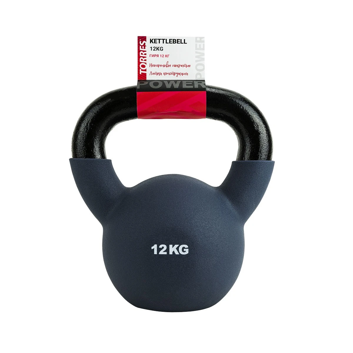 Гиря TORRES 12 кг, PL552212, чугун в неопреновой оболочке, серый
