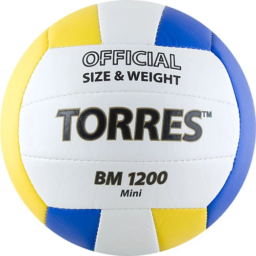 Мяч вол. сув. TORRES BM1200 Mini, V30031, р.1, диам. 15 см синт. кожа (ТПУ),маш.сш,бел-син-желт