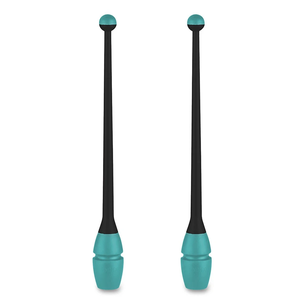 Булавы для худ. гимнастики INDIGO, IN018-BKB, 41 см, пластик, каучук, в компл. 2шт, черно-бирюзов