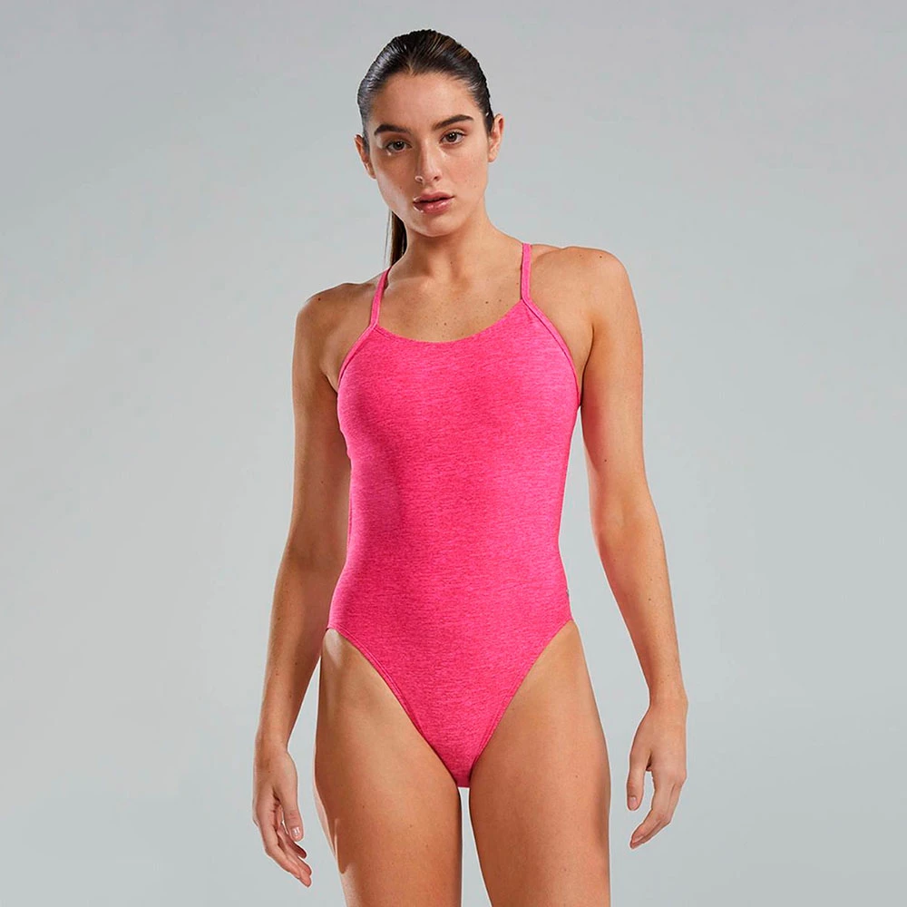 Данная модель имеет обтекаемую спортивную посадку с максимально открытой спиной для неограниченной свободы движений.. Ультратонкие эластичные бретели, х-образно пересекающиеся на спине, надежно фиксируют купальник, не позволяя ему смещаться во время тренировок.