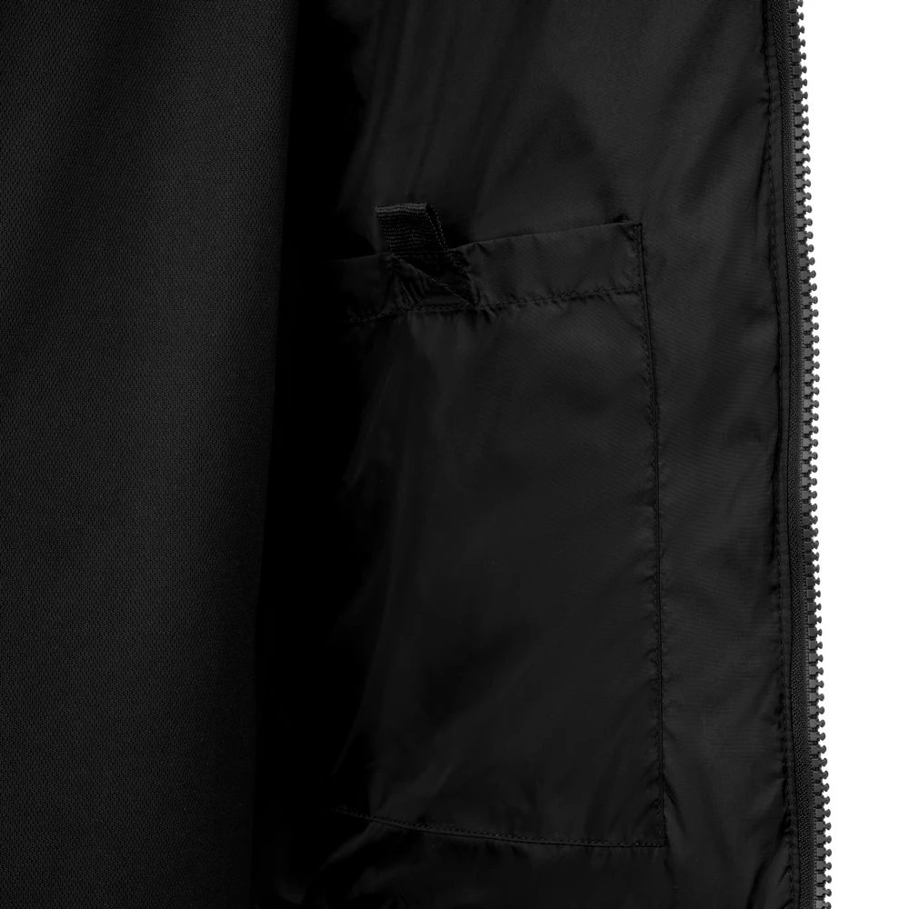 Материал куртки устойчив к разрывам и намоканию (water repellent). Высокий воротник, удобный капюшон и небольшие утягивающие манжеты нижней части рукава защищают от продувания.