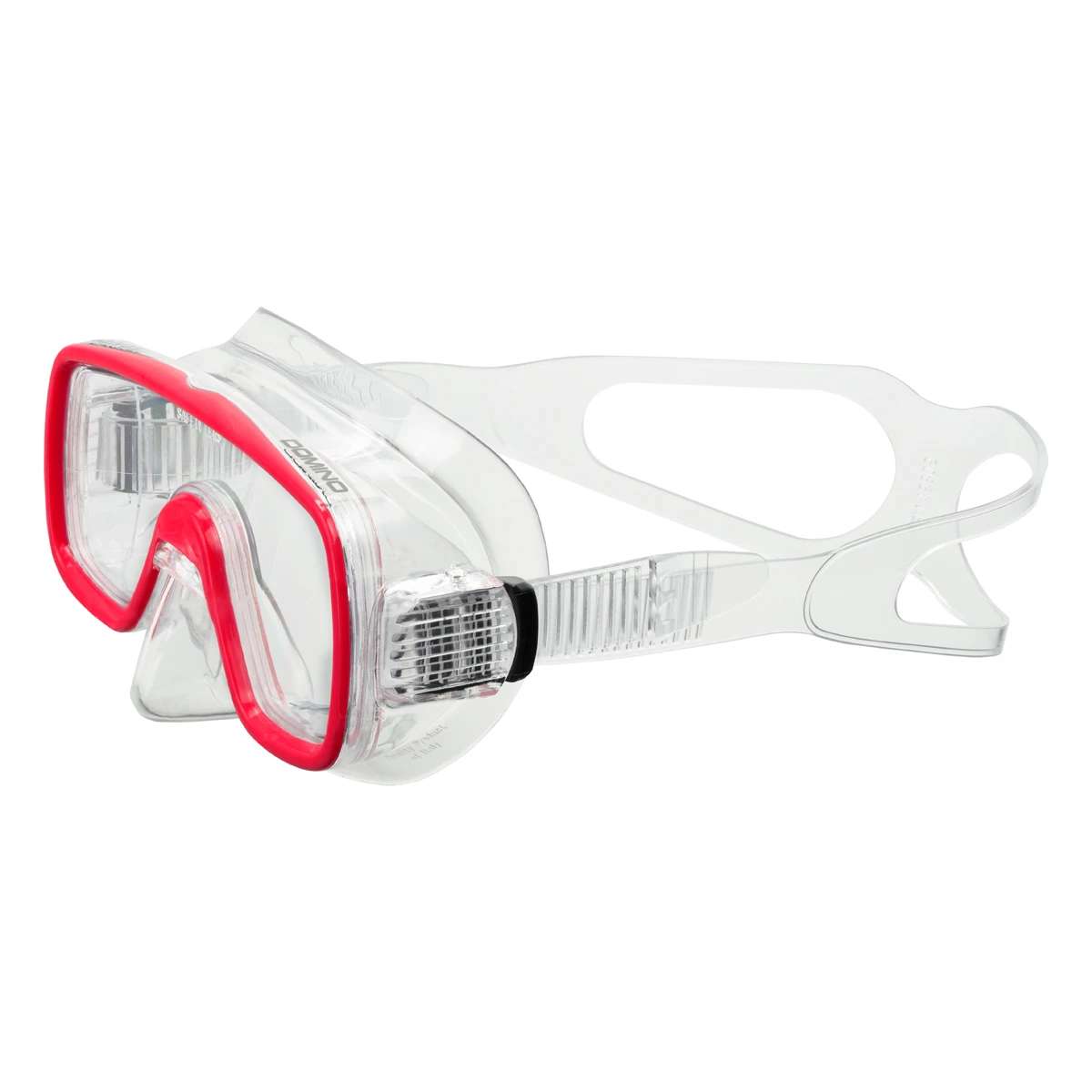 Маска для подводного плавания Salvas Domino Sr., с цельной (одинарной) линзой из закаленного стекла, оправой из поликарбоната, и обтюратором из мягкого и гипоаллергенного, сохраняющего форму эластомера Silflex. Широкий ремешок с системой быстрого регулирования маски по бокам. Лучшее сочетание цена-качество, и для начинающих любителей сноркелинга.