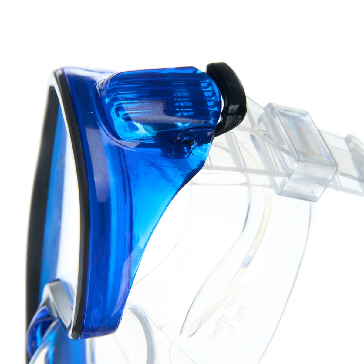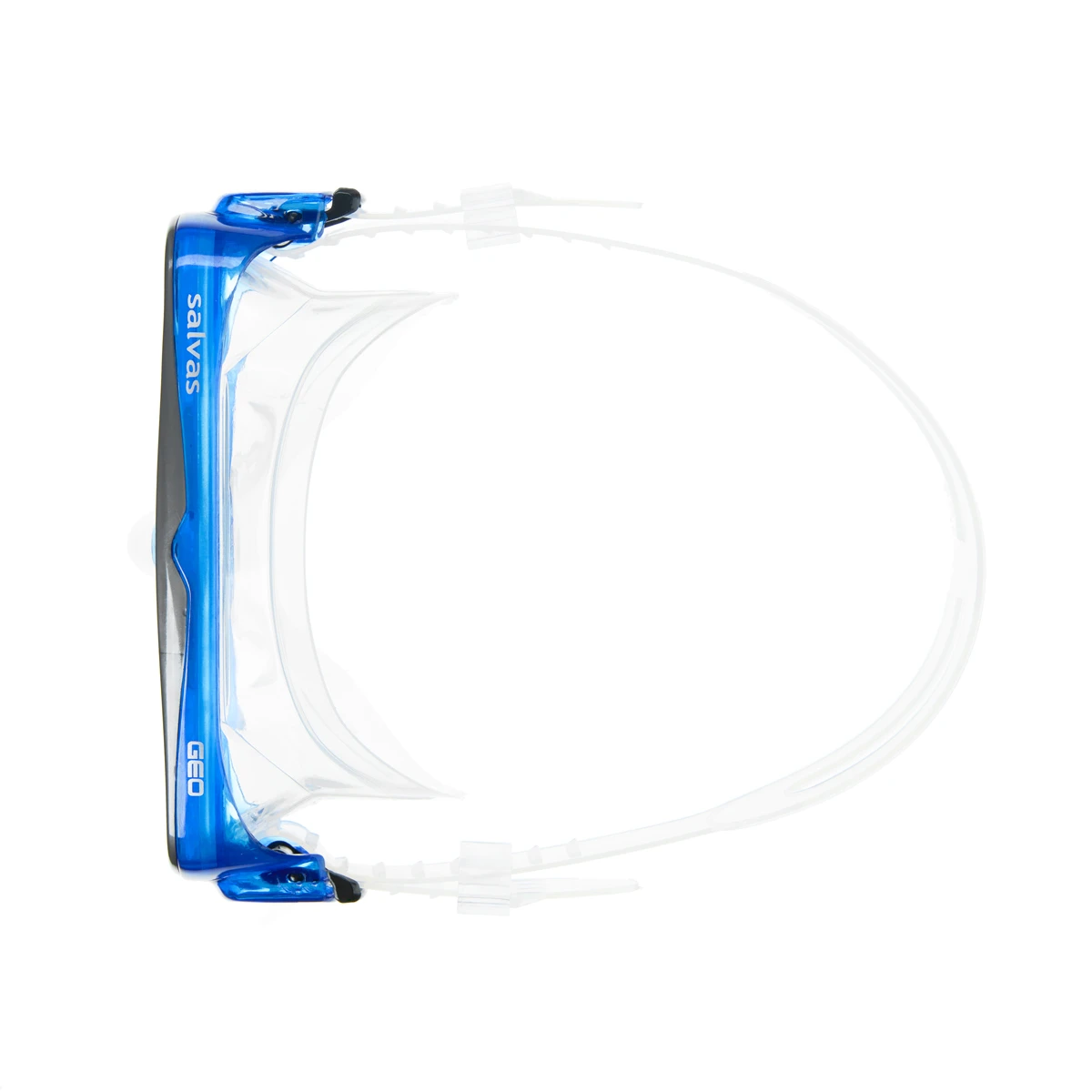 Маска для подводного плавания Salvas Geo Jr., с цельной (одинарной) линзой из безопасного стекла, оправой из поликарбоната, и обтюратором из мягкого силикона. Широкий ремешок из силикона с системой быстрого регулирования маски по бокам.