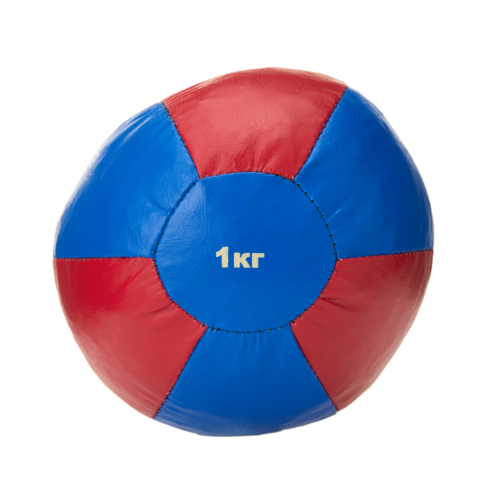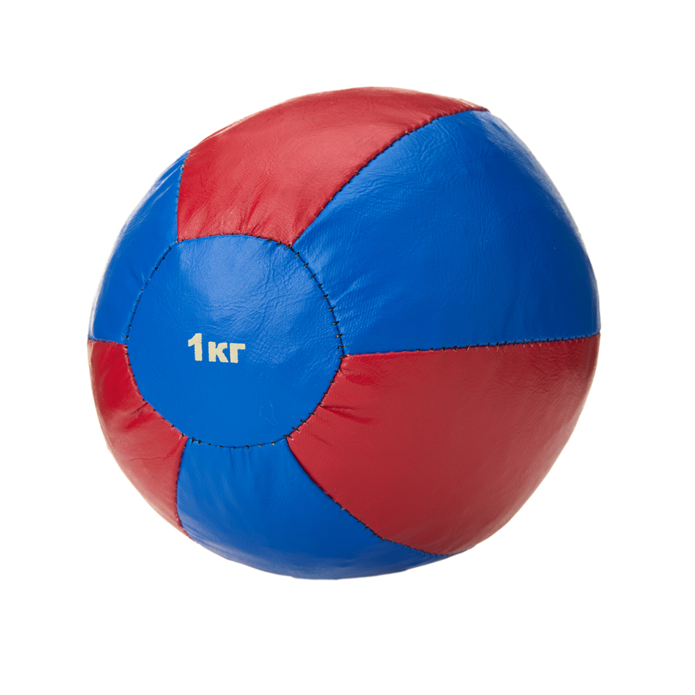 Медбол 3C143-K64, 1кг, иск.кожа, наполнитель резиновая крошка, диам. 16 см, маш сшивка, сине-красный