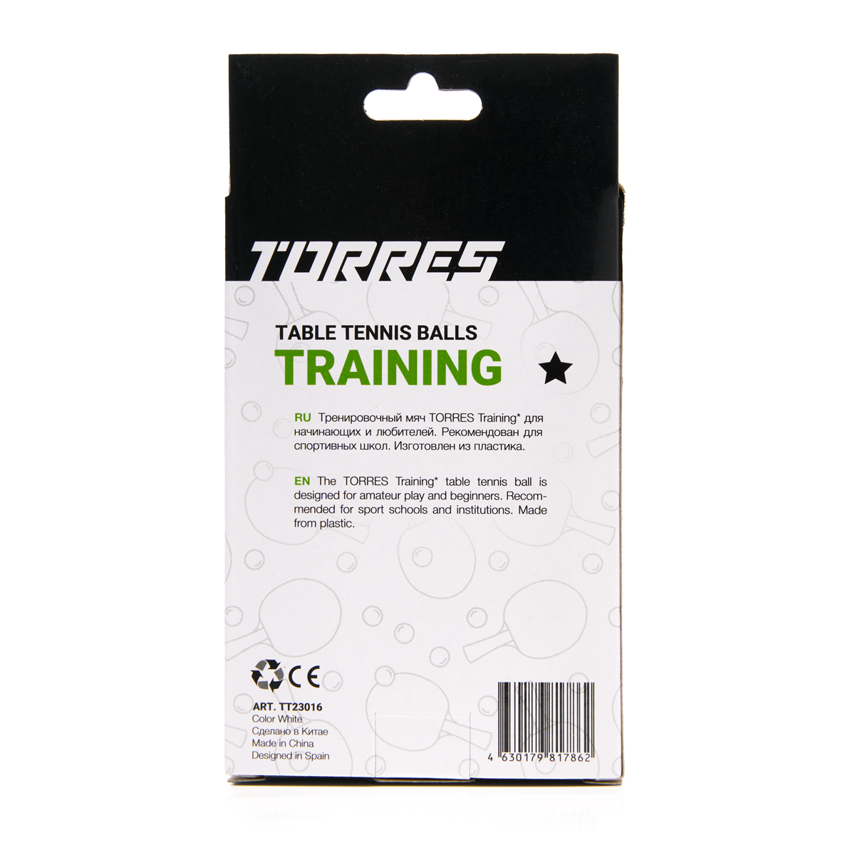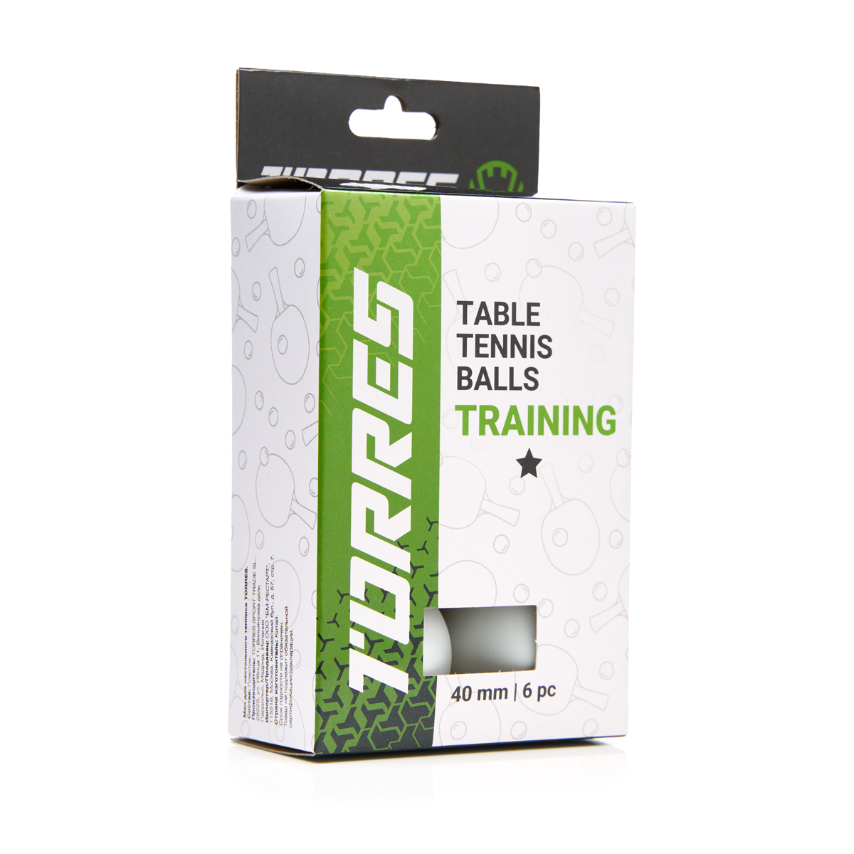 Мяч для наст. тенниса TORRES Training 1*, TT23016, диам. 40+ мм, упак. 6 шт, белый