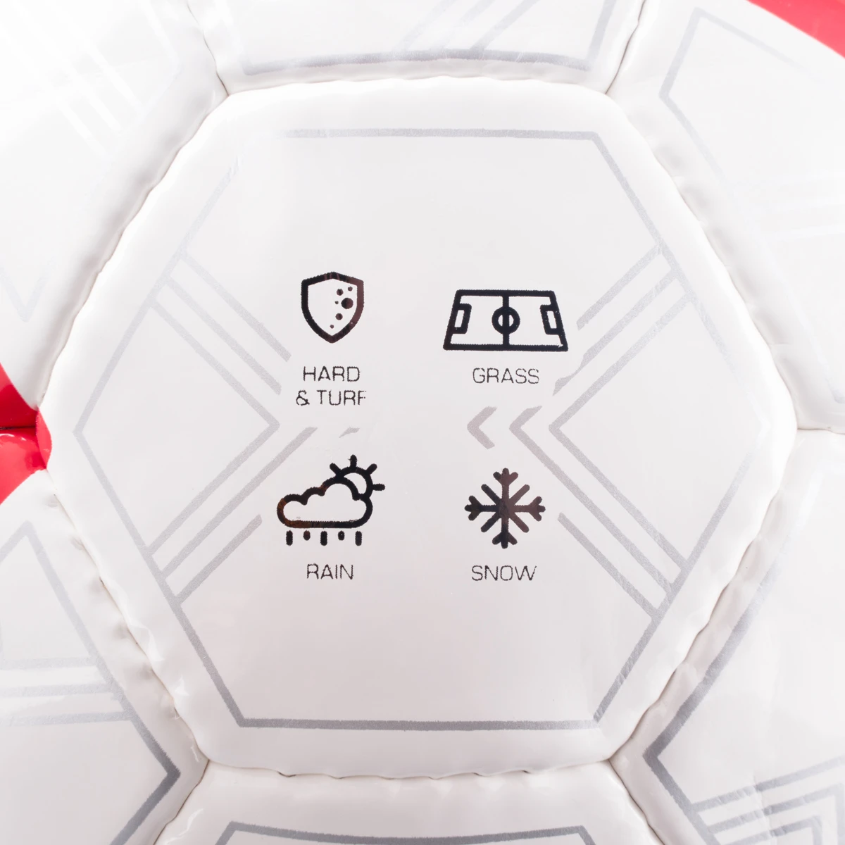 На мяч наносятся пиктограммы, рекомендующие его для игры в тех или иных погодных условиях и на тех или иных типах поверхностей.