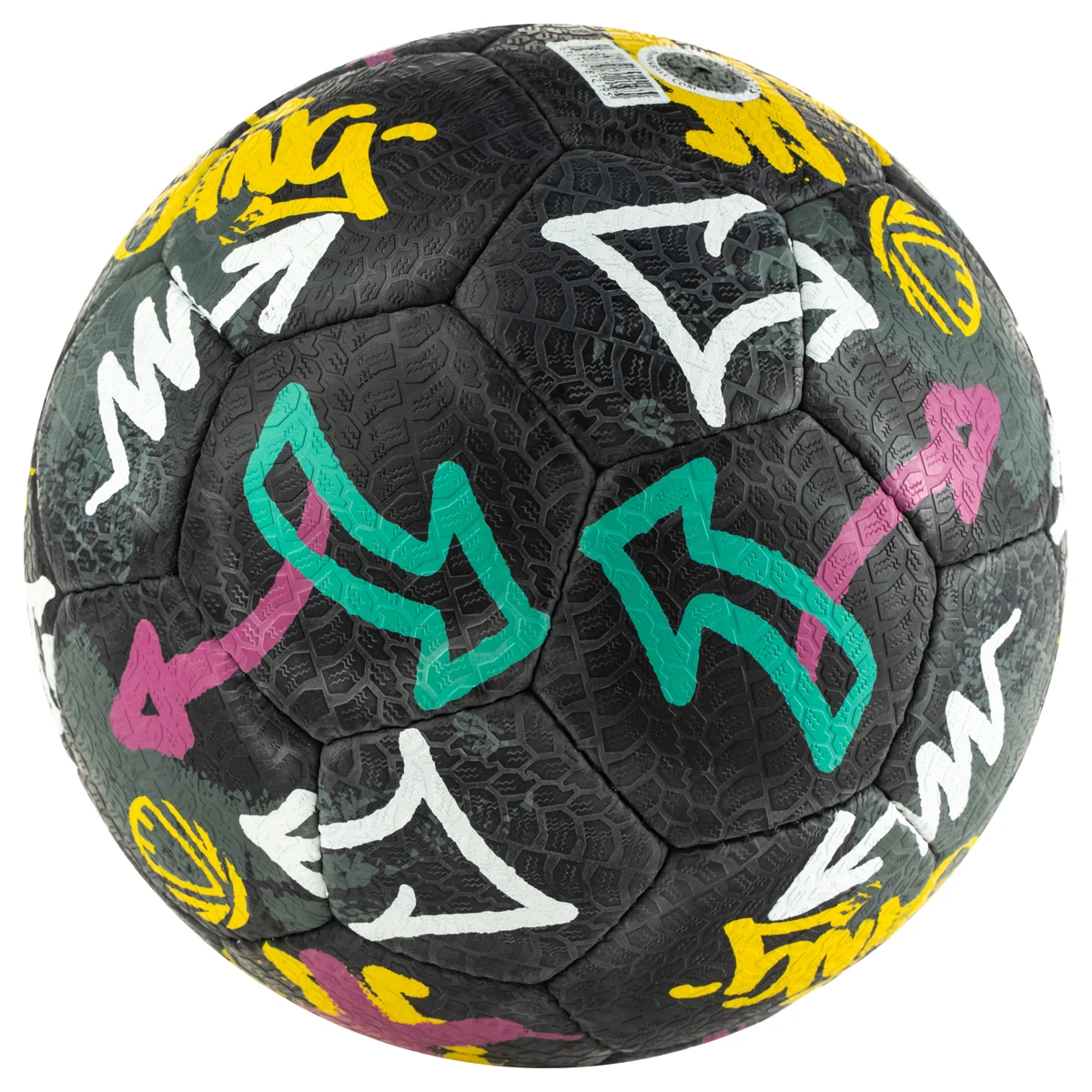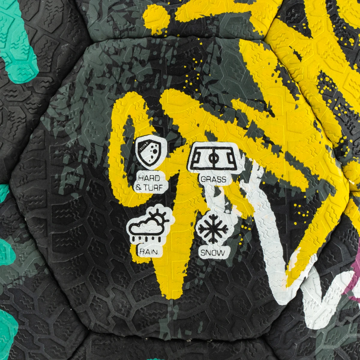 Уникальный в своем роде мяч Torres Street серии Street с неповторимым акцентым дизайном в стиле граффити привлекает внимание не только своим "эксклюзивным" видом, но и обладает техническими и игровыми характеристиками, вряд ли достижимыми другими мячами. Для его изготовления применяется резина толщиной 1,5 мм, обработанная по технологии RiflexPlay (нанесение матричного рисунка на поверхность материала при повышенных температурах). В дань названию серии Street это нанесение выполнено в виде рисунка протектора автомобильной покрышки. Использование резины, как материала стойкого к износу и трению, для внешней поверхности мяча позволяет играть им на самых экстремальных покрытиях и площадках, например, очень твердые гаревые площадки, асфальт (но всё-таки лучше беречь мяч и не играть им на асфальте :), жесткие синтетические покрытия. Поэтому Street - это мяч, который особенно хочется рекомендовать для любительской игры, в которой, как известно, не придают большого значения выбору площадки. Бесспорно, в силу своей исключительности мяч должен занять свое место и на полках магазинов, и в поставках в учебные учреждения. Возвращаясь к техническим характеристикам, помимо резины в конструкцию каркаса входят 4 подкладочных слоя из хлопка. Латексная камера с бутиловым ниппелем. Ручная сшивка, 32 панели. Размер 5.