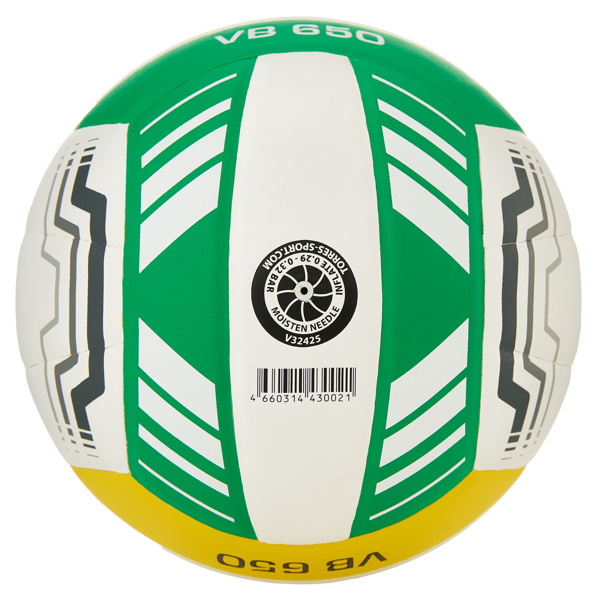 Мяч вол. TORRES VB 650, V32425, р.5, синт.кожа полиуретан, клееный, бут.кам, бел-зелено-желт