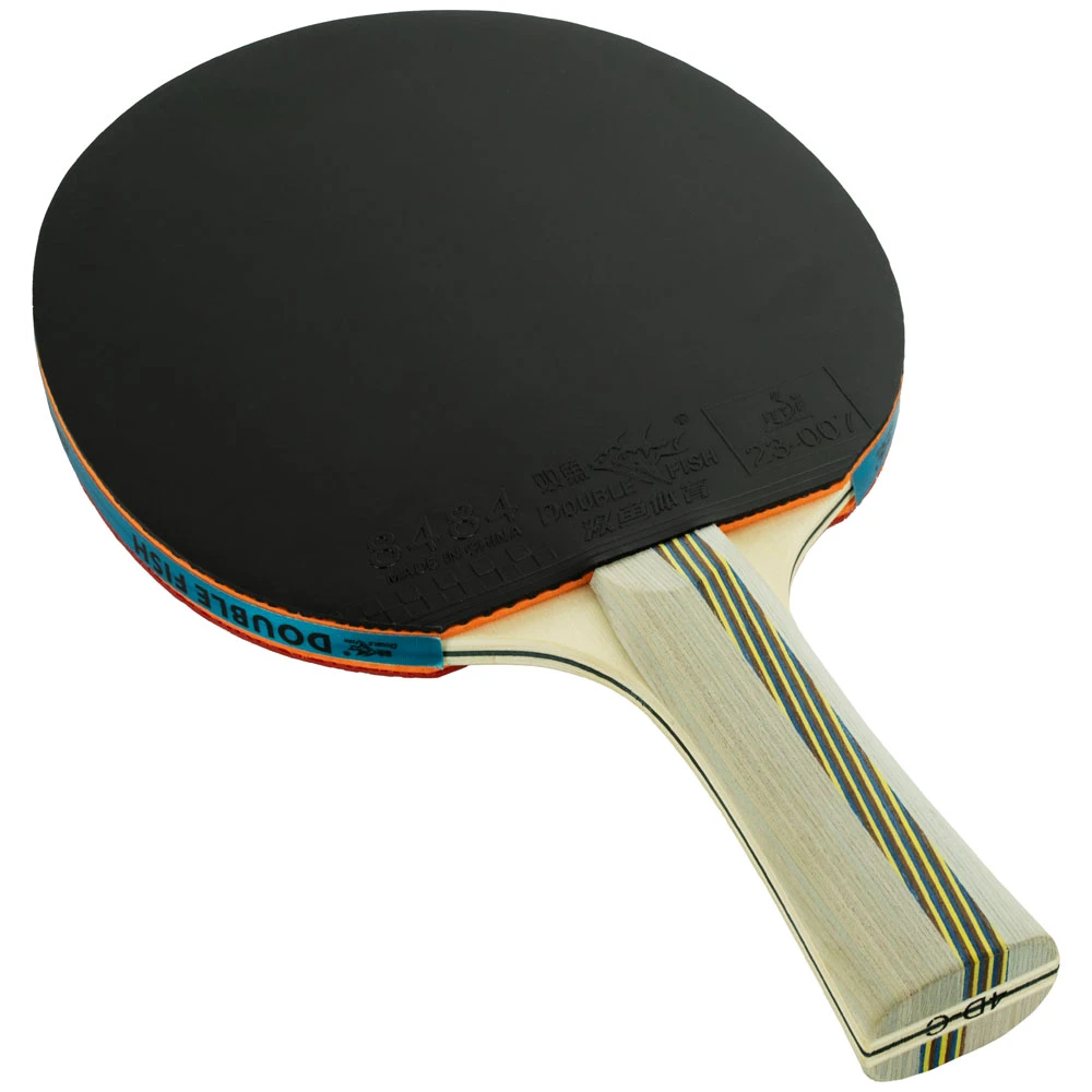 Ракетка DOUBLE FISH 4D-C любительского уровня прекрасно подойдёт универсальным игрокам, умеющим одинаково хорошо играть как в защите, так и в нападении. Семислойное основание из тополя и накладок DOUBLE FISH 8484 с губкой 2 мм создают ракетку с превосходными скоростными характеристиками. В комплекте чехол с застежкой на молнии и ручкой для удобства хранения и переноски, а также дополнительной защиты от внешнего воздействия.
