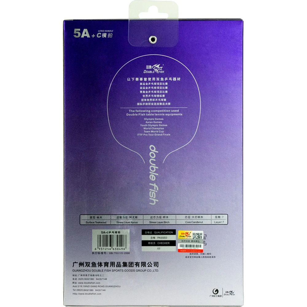 Ракетки DOUBLE FISH серии А+C маркируются QR кодом, что подтверждает оригинальность товара и гарантирует защиту от подделки. Доступ к QR коду пользователь получает удалив защитный скретч-слой.