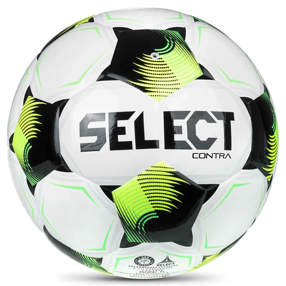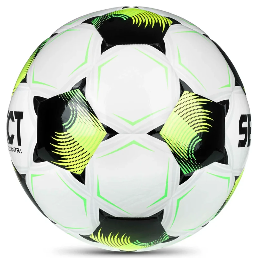 Бюджетный мяч SELECT Contra DB, дизайн 2026. Изготовлен по технологии DB (Dual Bonding) - сочетание термо-склеивания панелей и сшивки. Перед сшивкой на края панелей наносится специальный клей, который активируется при помещении, уже сшитого, мяча в специальную термо-форму. Эта технология позволяет максимально скрыть швы, сделать их более сглаженными, прочными и влагонепроницаемыми. Cпециально разработанная покрышка мяча состоит из глянцевой синтетической кожи (полиуретан) и пяти подкладочных слоев синтетической ткани. Такая конструкция позволяет добиться сохранения формы и размера мяча в течение всего срока эксплуатации даже в условиях интенсивных тренировок. Рекомендуется для тренировок команд любительского и клубного уровней предпочтительно на натуральных и искусственных нежестких покрытиях. Не рекомендуется для жестких, гаревых полей. Латексная бескрыльевая камера с бутиловым ниппелем, гибридная сшивка.