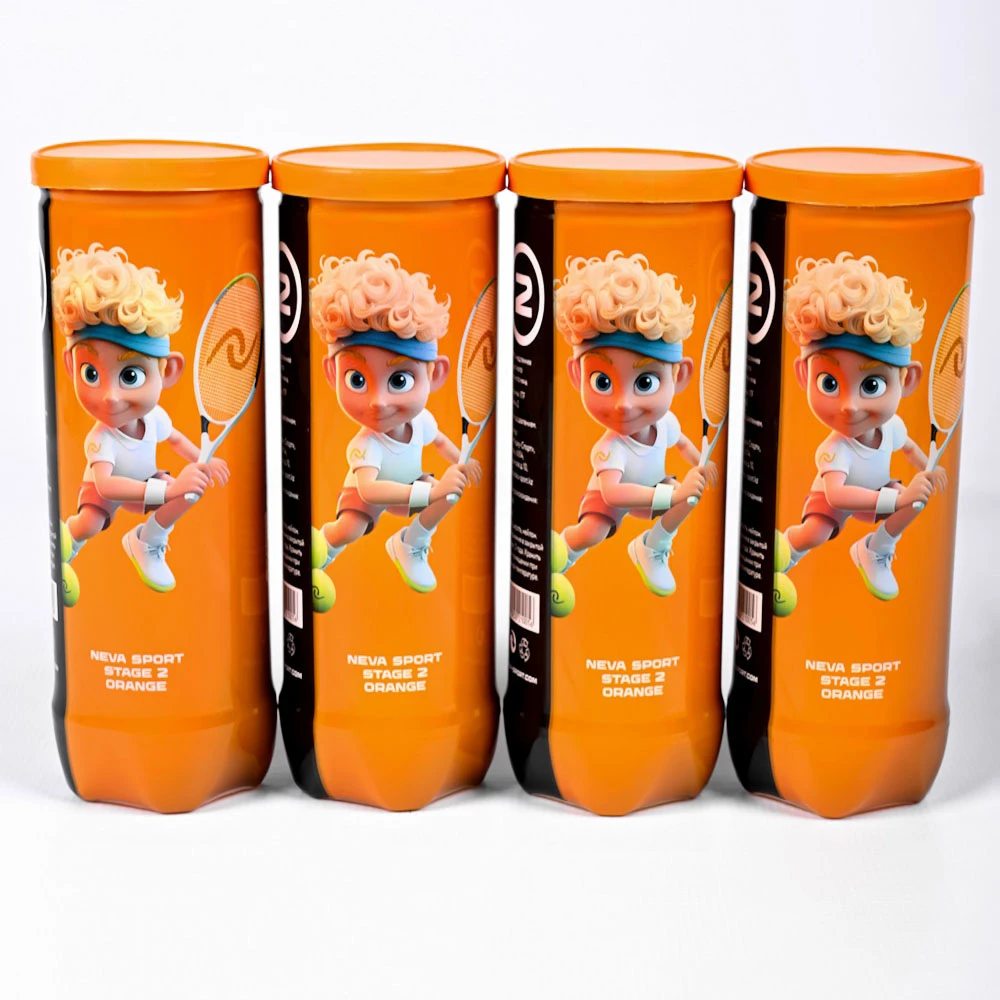 Мячи NS Orange с низким внутренним давлением - специально разработанные для тренировки и соревнований детей в возрасте 8-9 лет. Скорость отскока на 50% меньше в отличии от стандартных мячей. Размер корта должен быть 19x5, 6-8, 2 м (обычно на стандартном корте вмещают два «оранжевых» шириной 5.5 м).