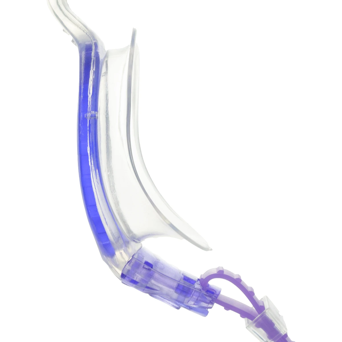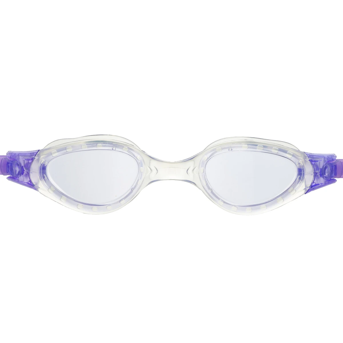 Прозрачные линзы из поликарбоната имеют специальное покрытие от запотевания и защиту от ультрафиолетового излучения, а их широкая и изогнутая форма расширяет поле зрения. Мягкий силиконовый уплотнитель обеспечивает максимально комфортное прилегание и надежно защищает от попадания воды. Раздвоенный силиконовый ремешок легко регулируется по бокам.
