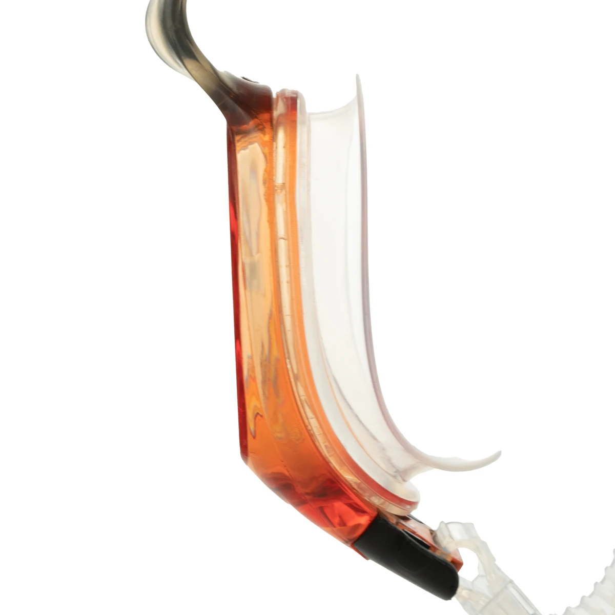 Уплотнитель и ремешок выполнены из так называемого жидкого силикона, обеспечивающего исключительный комфорт пловцам. Широкие линзы из поликарбоната обеспечивают широкий обзор и обработаны специальным составом предотвращающим запотевание. Оранжевый цвет линз ликвидирует часть синего спектра света, благодаря чему контрастность, глубина, резкость увеличиваются — улучшается восприятие объектов в целом. Защита от ультрафиолета дает возможность использовать очки для плавания на открытой воде и при ярком освещении. Двойной, регулируемый по бокам ремешок из силикона.