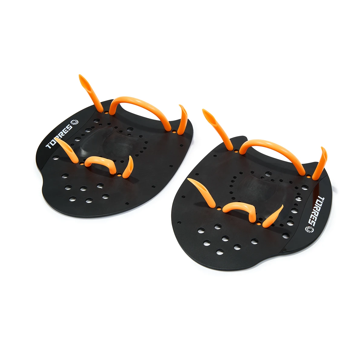 Лопатки для плавания TORRES, Арт.SWP112402BL, р.M, черно-оранжевый