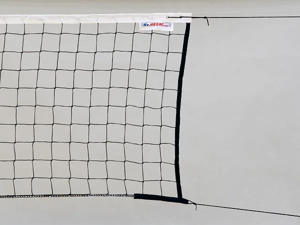 Сетка вол. трен. "KV.REZAC" арт.15955431, 9,5х1 м, нить 3 мм ПП, яч. 10 см., стал. трос в ПВХ оболочке дл. 12,5 м, в. лента из ПЭ 5 см, без ниж. ленты, усиленный низ сетки, 4 шн. для натяж., цв. черный. В компл. идут огранич. ленты.