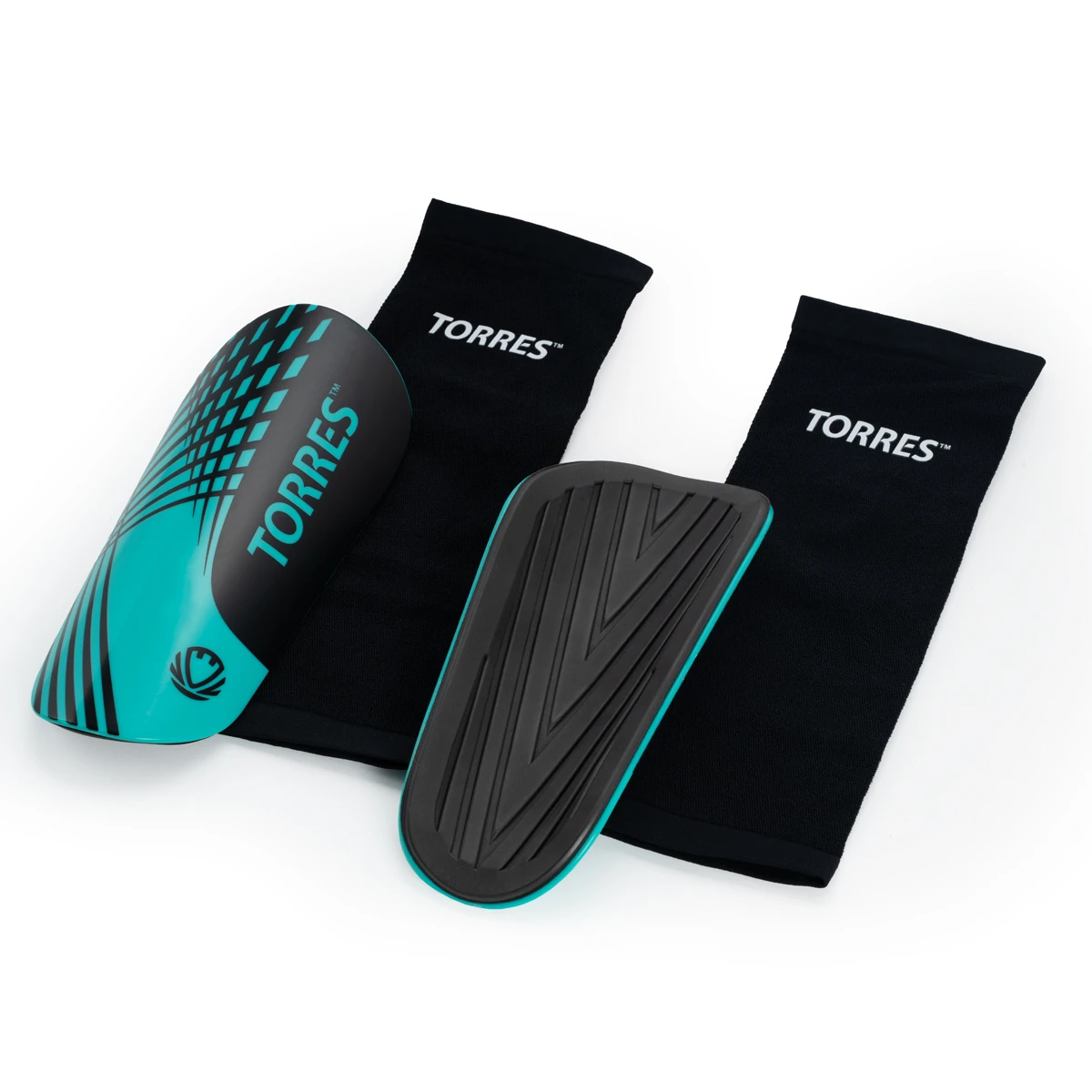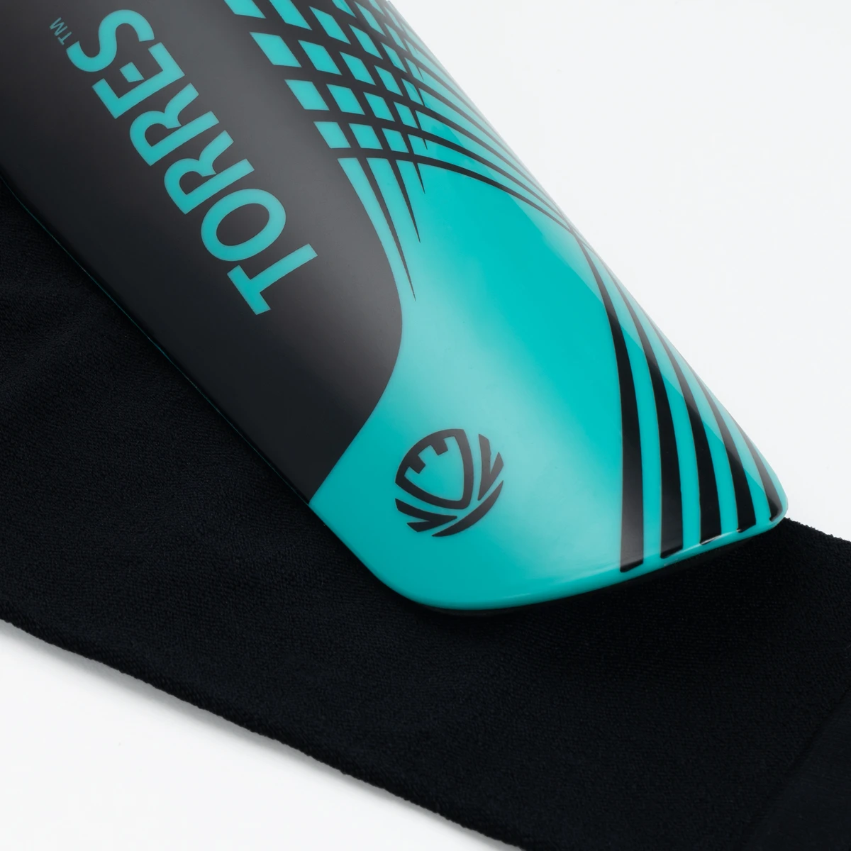 Щитки футбольные TORRES Pro, FS2308M, р. M, без голеностопа, без заст., эласт.чулок, черно-бирюзоый