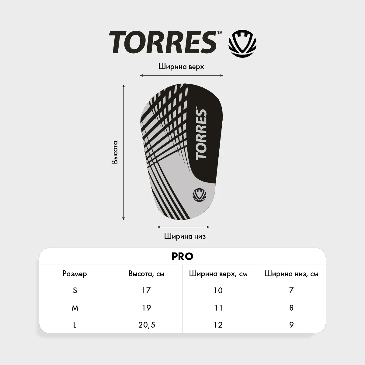 Профессиональные футбольные щитки TORRES Pro выполненые из легкого, прочного пластика, предназначены для защиты голени при ударах.