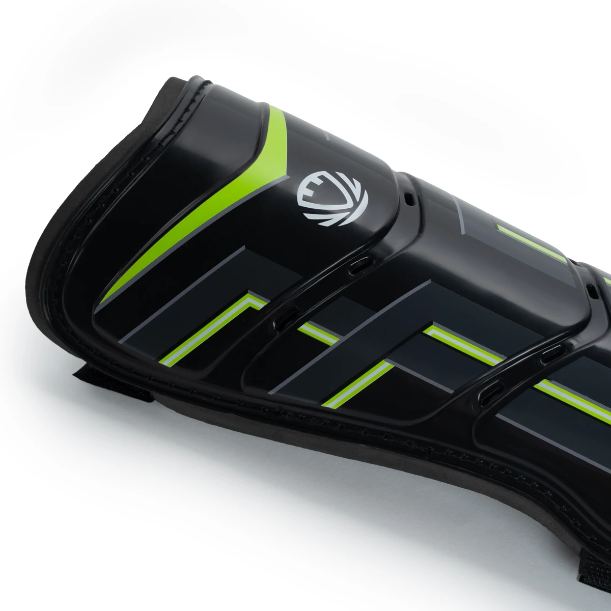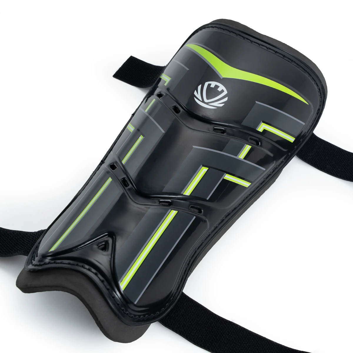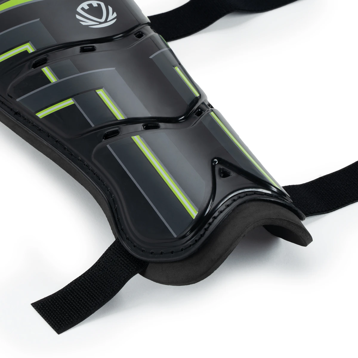 Щитки футбольные TORRES Training , FS2306S, р. S, без голеностопа, две заст. на лип, черно-салатовый