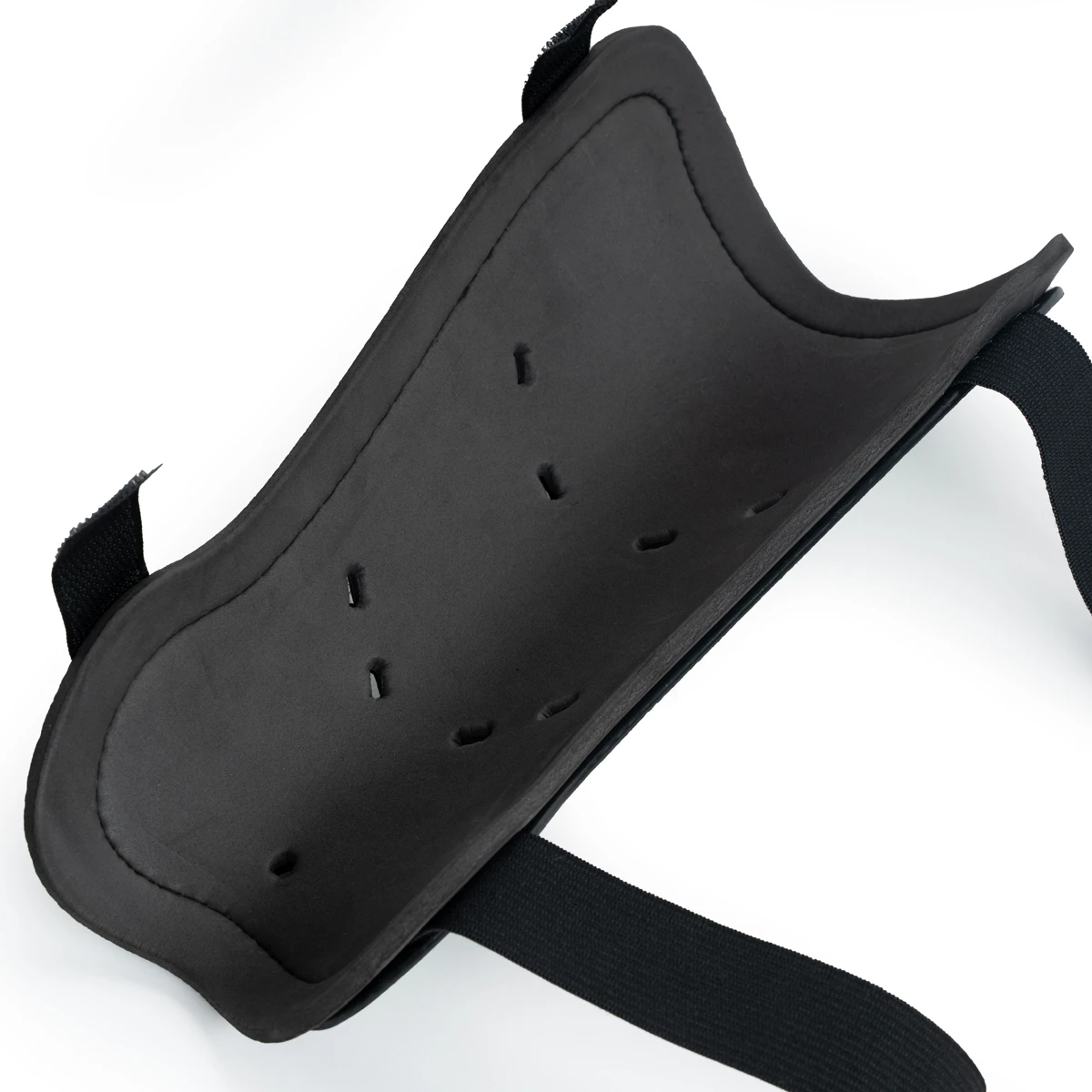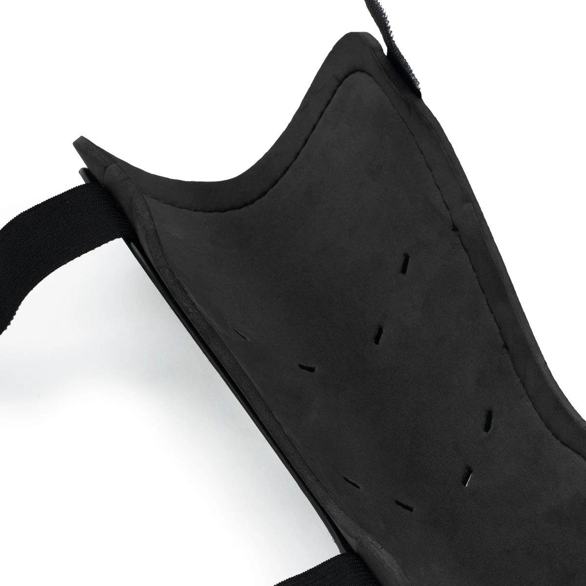 Внешняя поверхность щитка выполнена из высокопрочного пластика, внутренняя подкладка из синтетической пены (ЭВА) толщиной 5 мм. Отверстия в пластике и внутренней подкладке для вентиляции, две эластичных застежки 25мм на липучке (застегиваются сбоку). Без голеностопа.