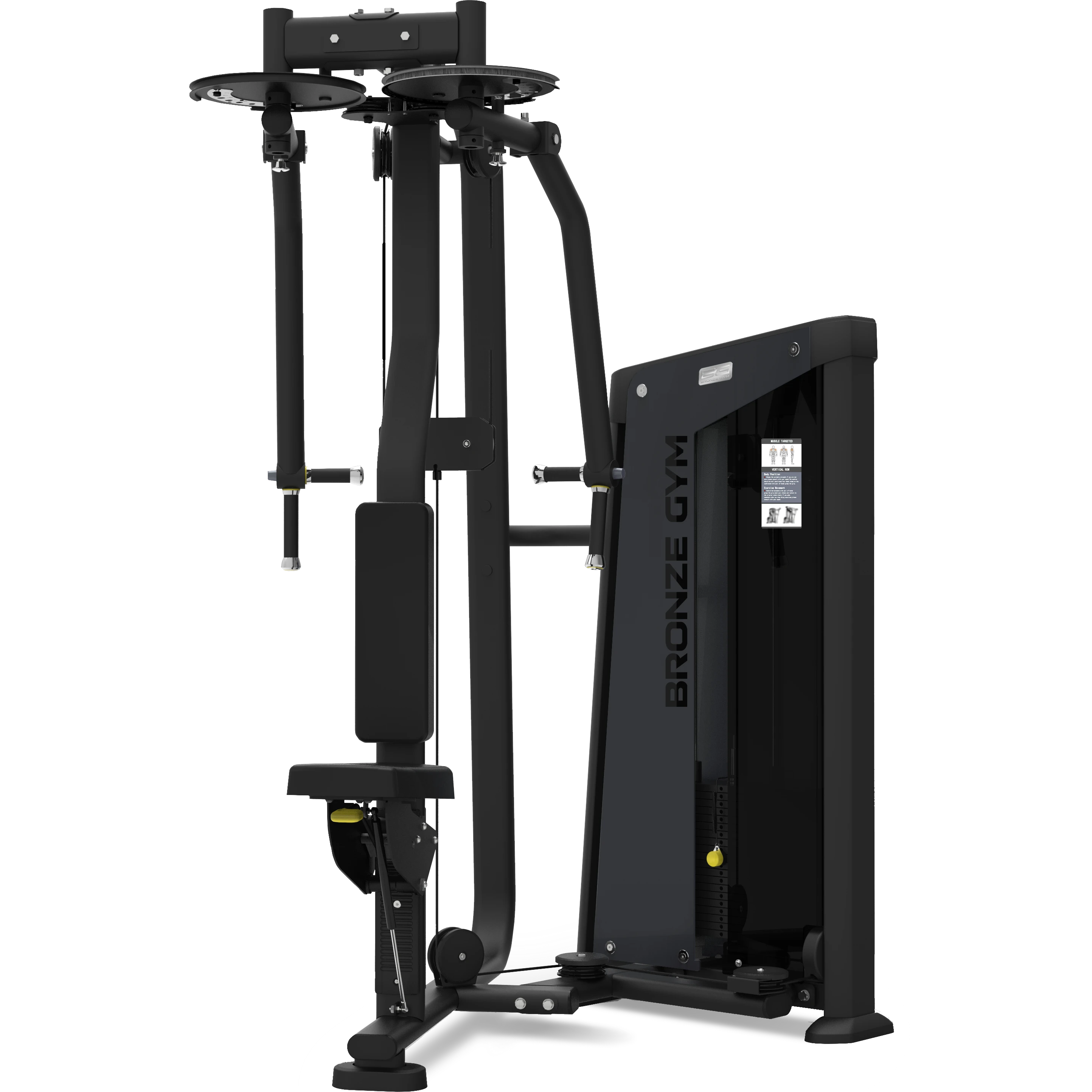 BRONZE GYM NEO 07- профессиональный тренажер коммерческого класса для жима от груди и упражнений на заднюю дельту. C его помощью пользователь сможет проработать грудные мышцы и дельтовидные мышцы. Профиль рамы тренажера, размером 100*50, выполнен из высокопрочной стали толщиной 3 мм. Благодаря двухслойному порошковому покрытию, обеспечивается защита корпуса от внешних повреждений на 98%. Прорезиненные, нескользящие рукоятки модели обеспечивают надежное сцепление рук пользователя во время занятий, что избавляет от риска получения травм. Стальной трос в ПВХ оболочке, общим диаметром 6 мм, отвечает за подъем стека, общий вес которого составляет 100 кг. Сами плиты стека изготовлены из прочной легированной стали. Для простоты использования, все фиксаторы на тренажере выполнены в ярких цветах*. Установленное на модели эргономичное сиденье из высокопрочной экокожи гарантирует повышенный комфорт на протяжении всей тренировки. Подушки с полиуретановым наполнителем максимально смягчают давление на ноги. Фиксатор для ног регулируется по вертикали. В качестве дополнения BRONZE GYM NEO 07 оснащен держателем для бутылки с водой.