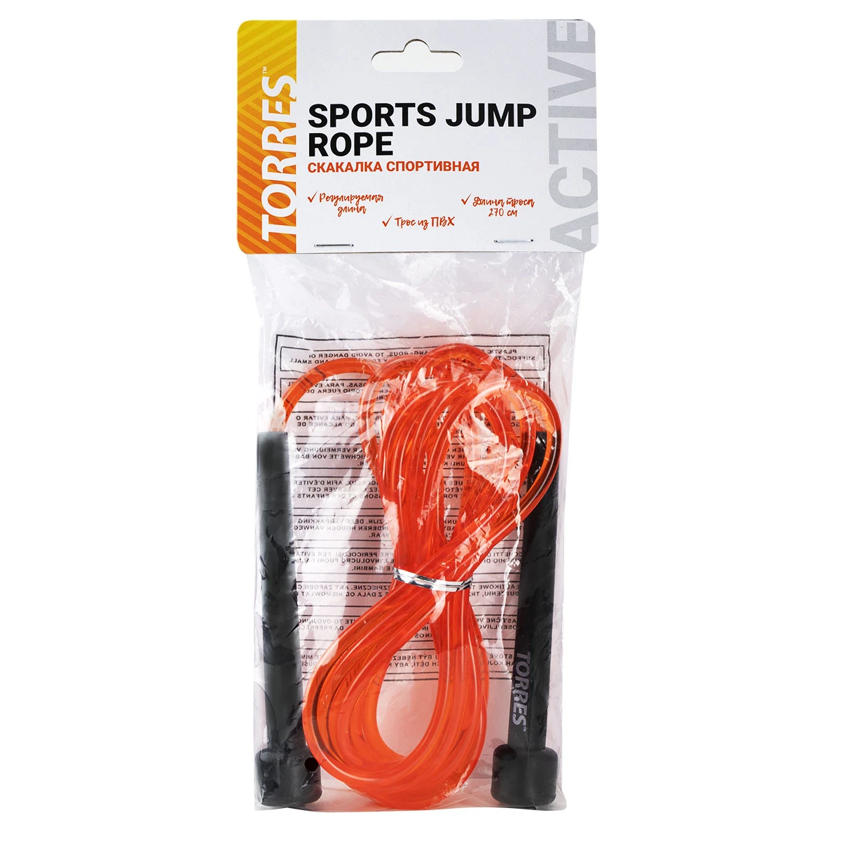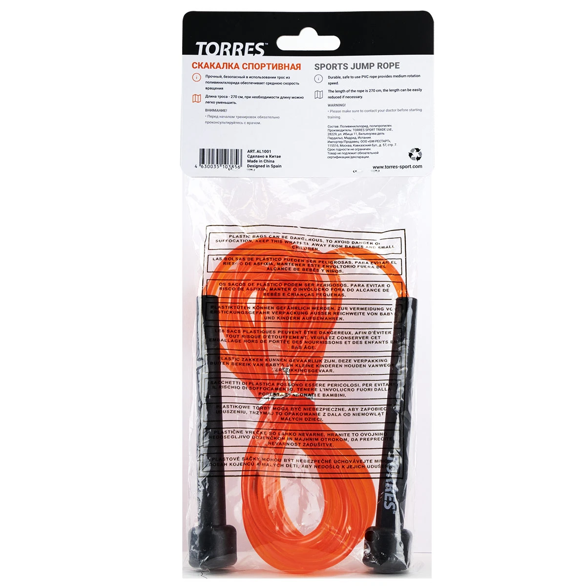 Скакалка TORRES, AL1001, трос из ПВХ, эргономичные ручки, средняя скорость вращения, оранжевая