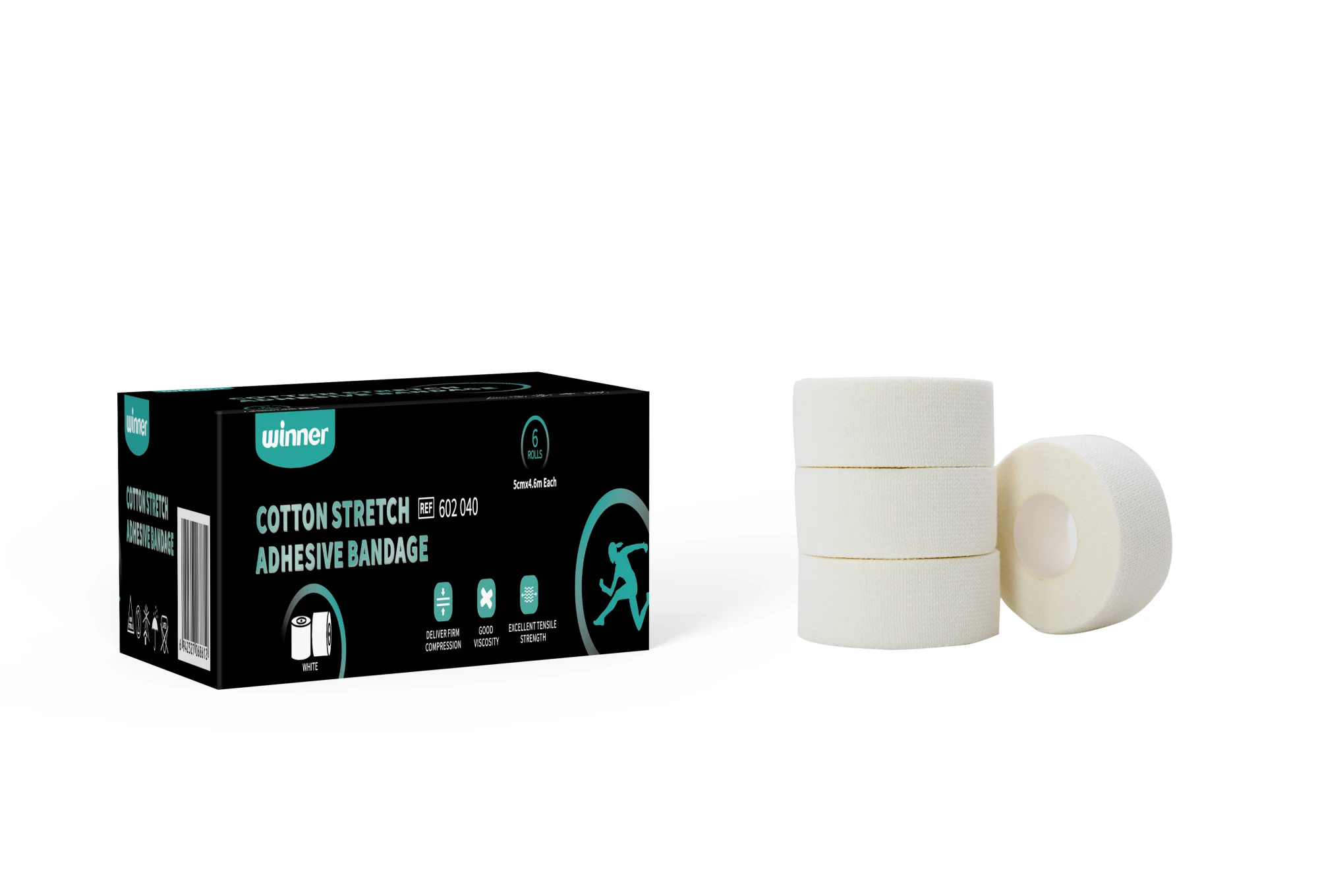 Тейп спортивный Winner, Cotton Stretch Adhesive bandage, 602040 5см*4.6м, белый, 6 шт./упаковке